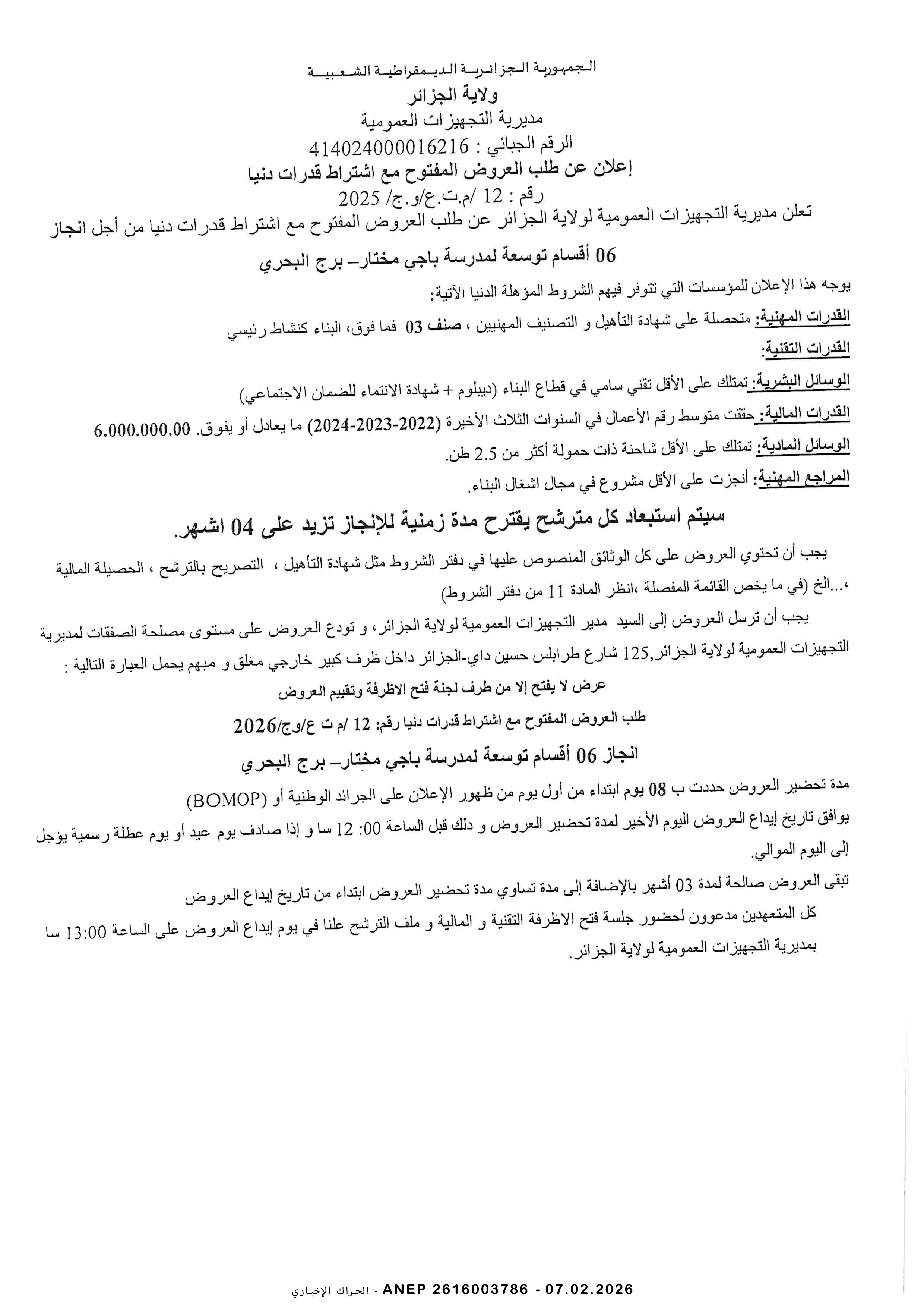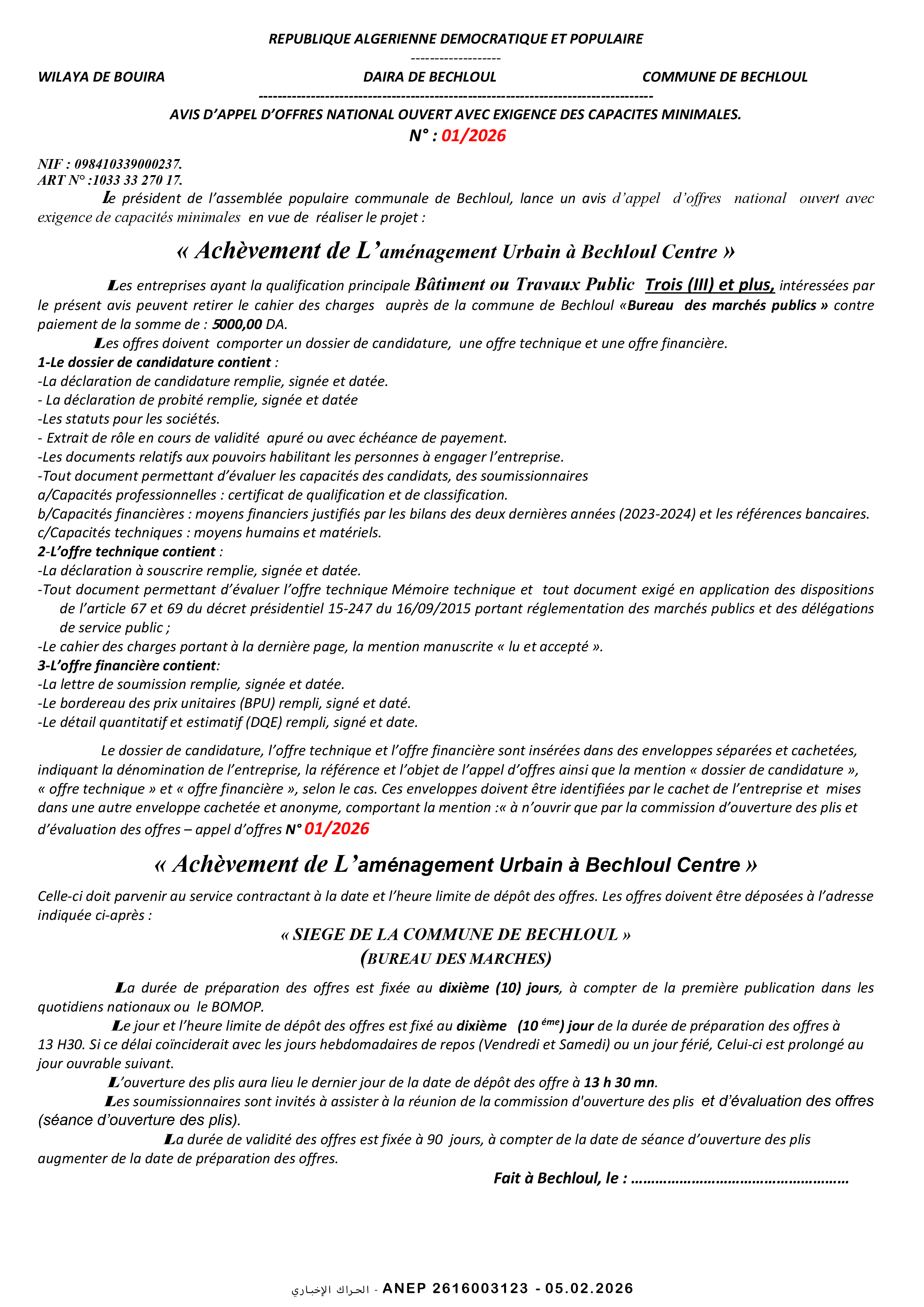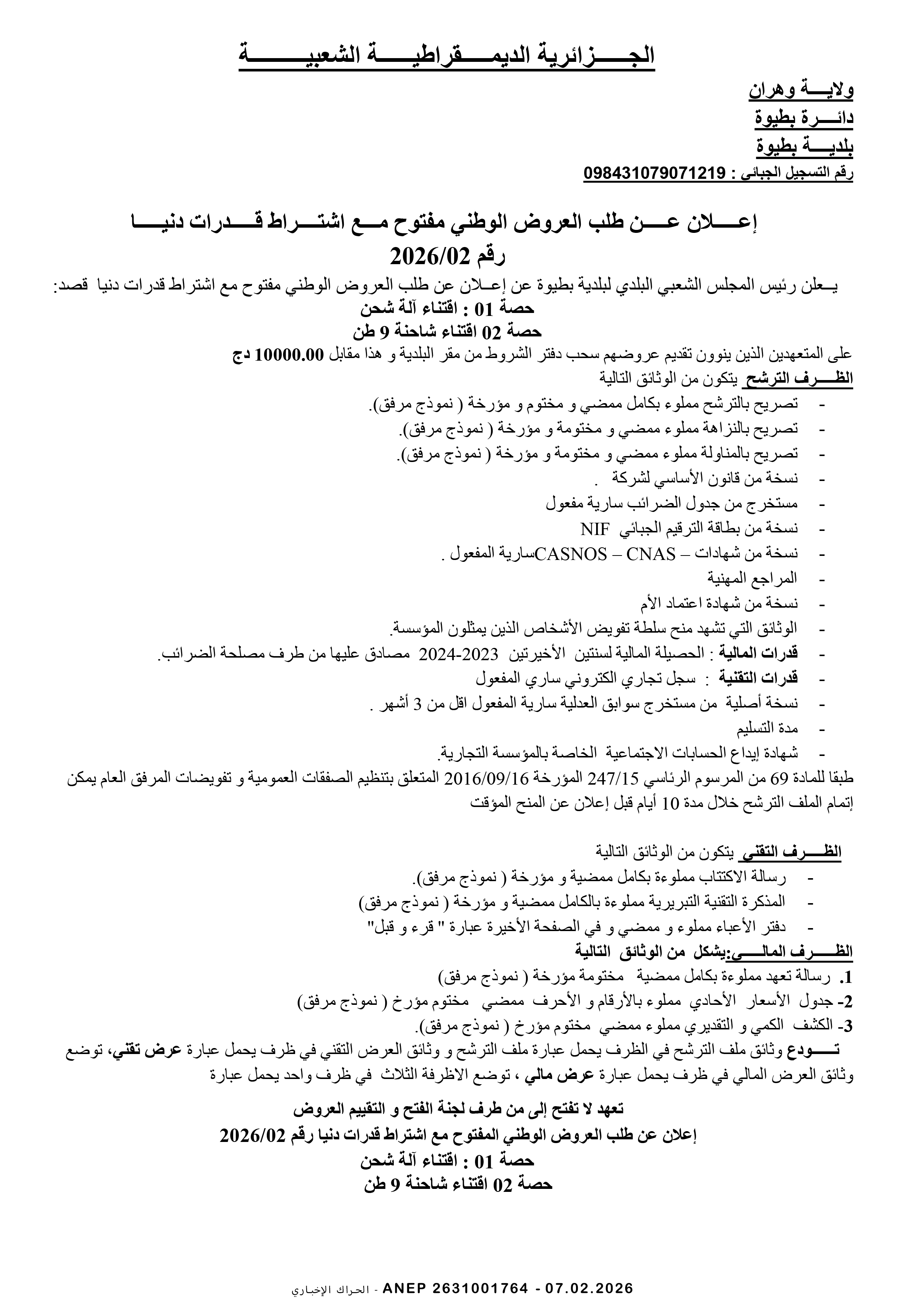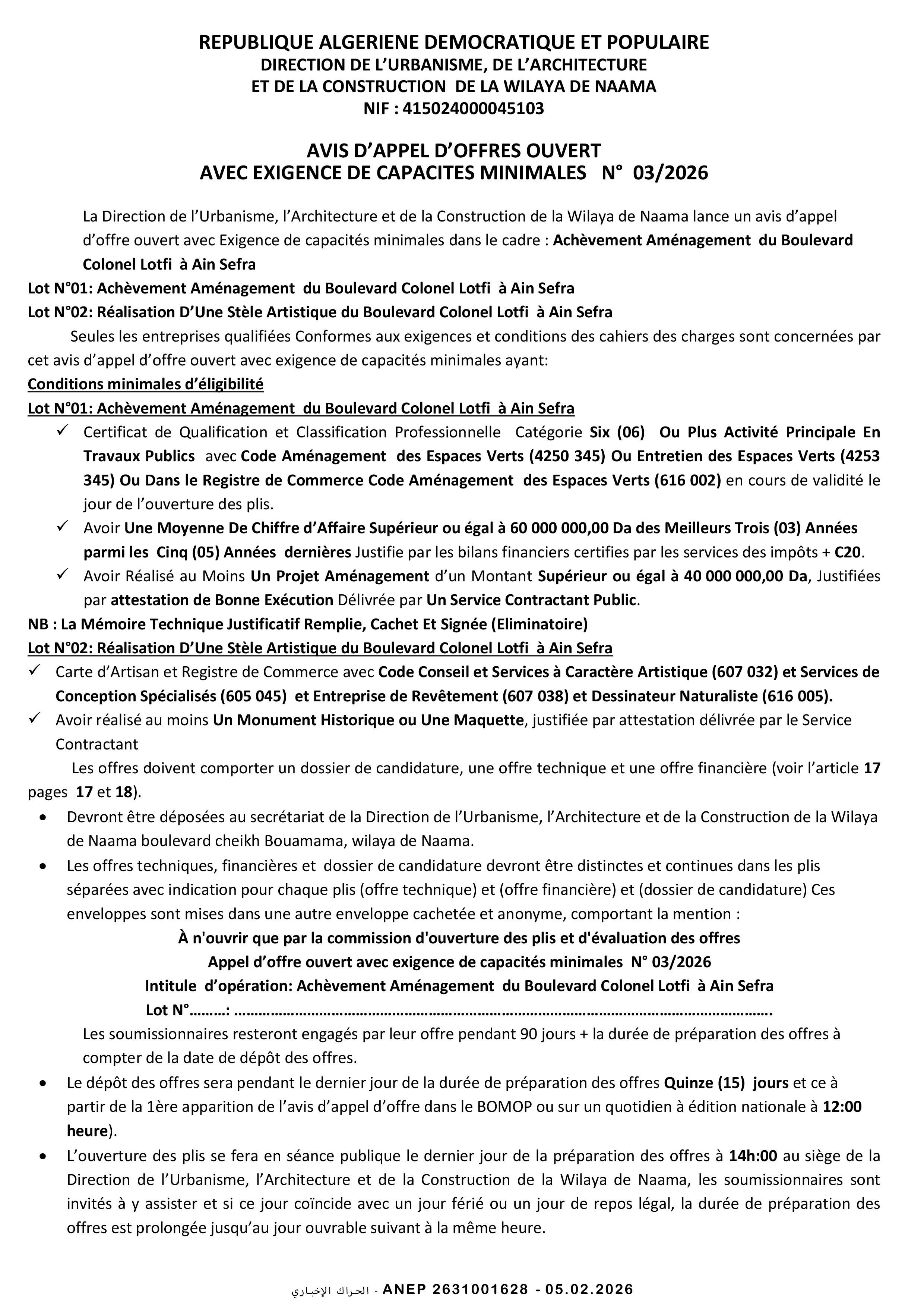 إعلان عن طلب عروض وطني مفتوح