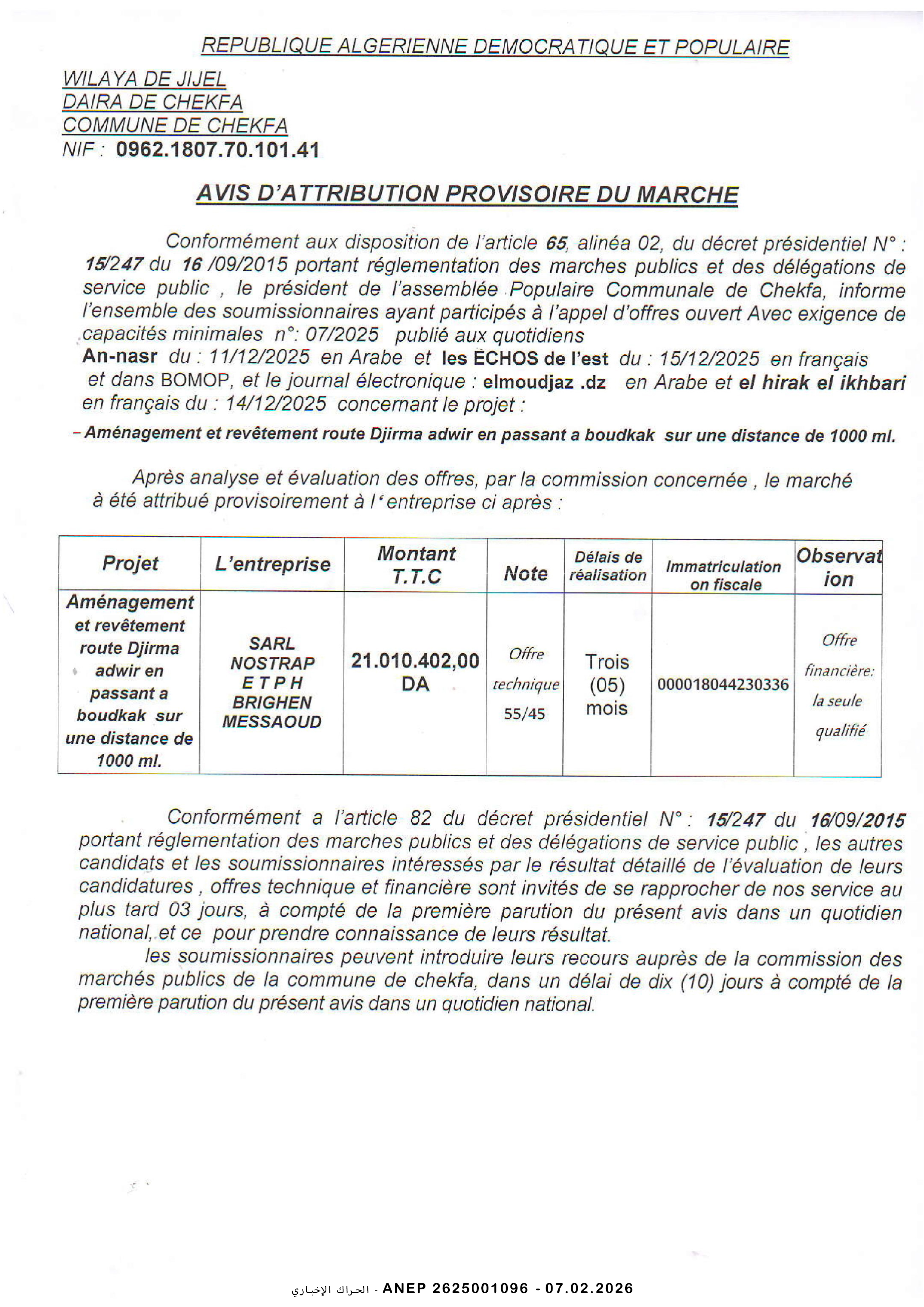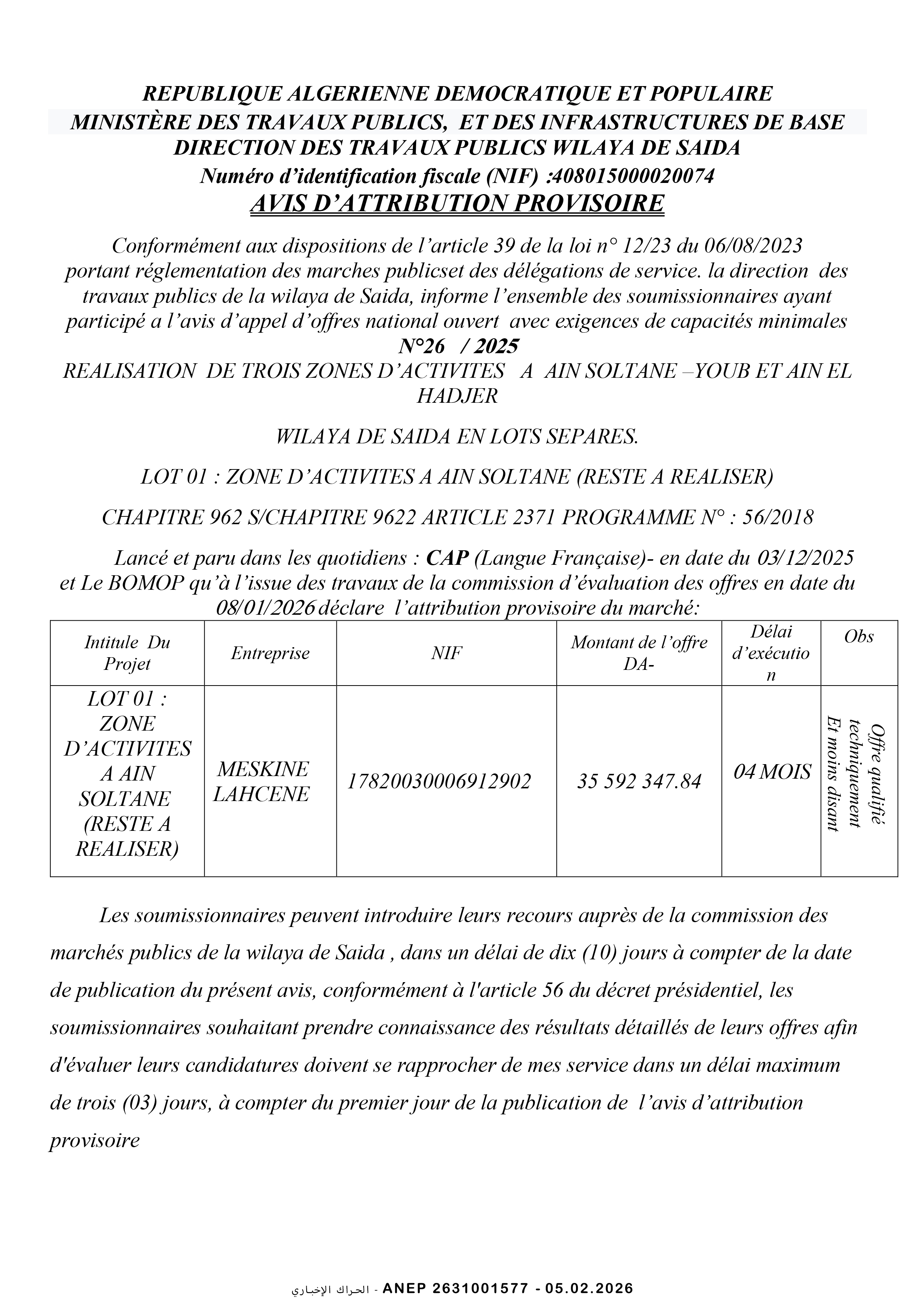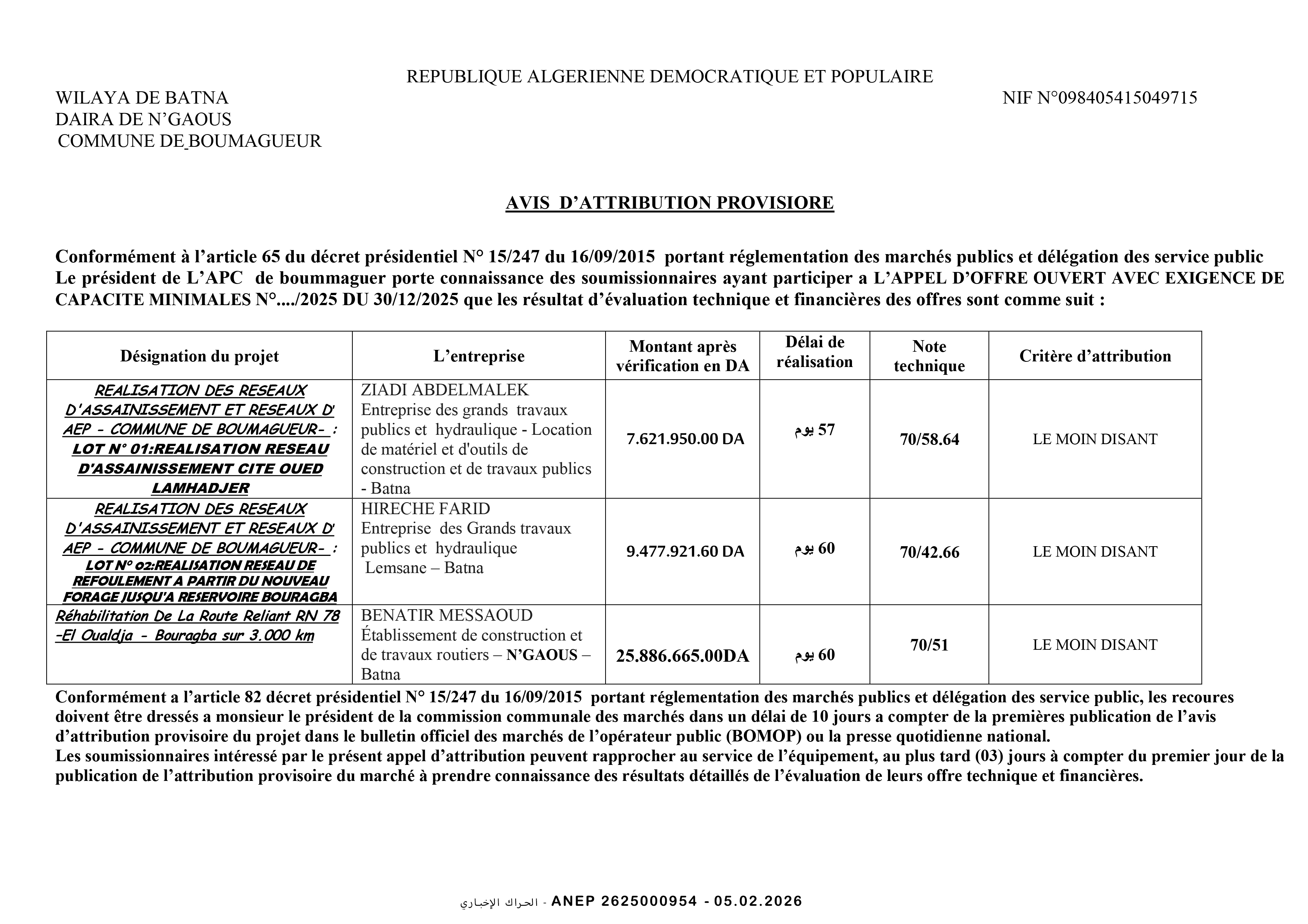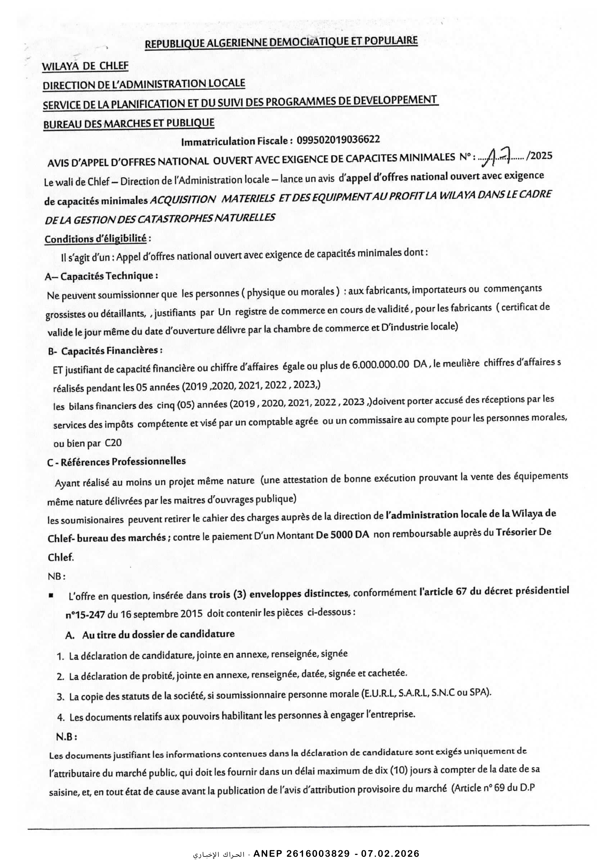 إعلان عن طلب عروض وطني مفتوح