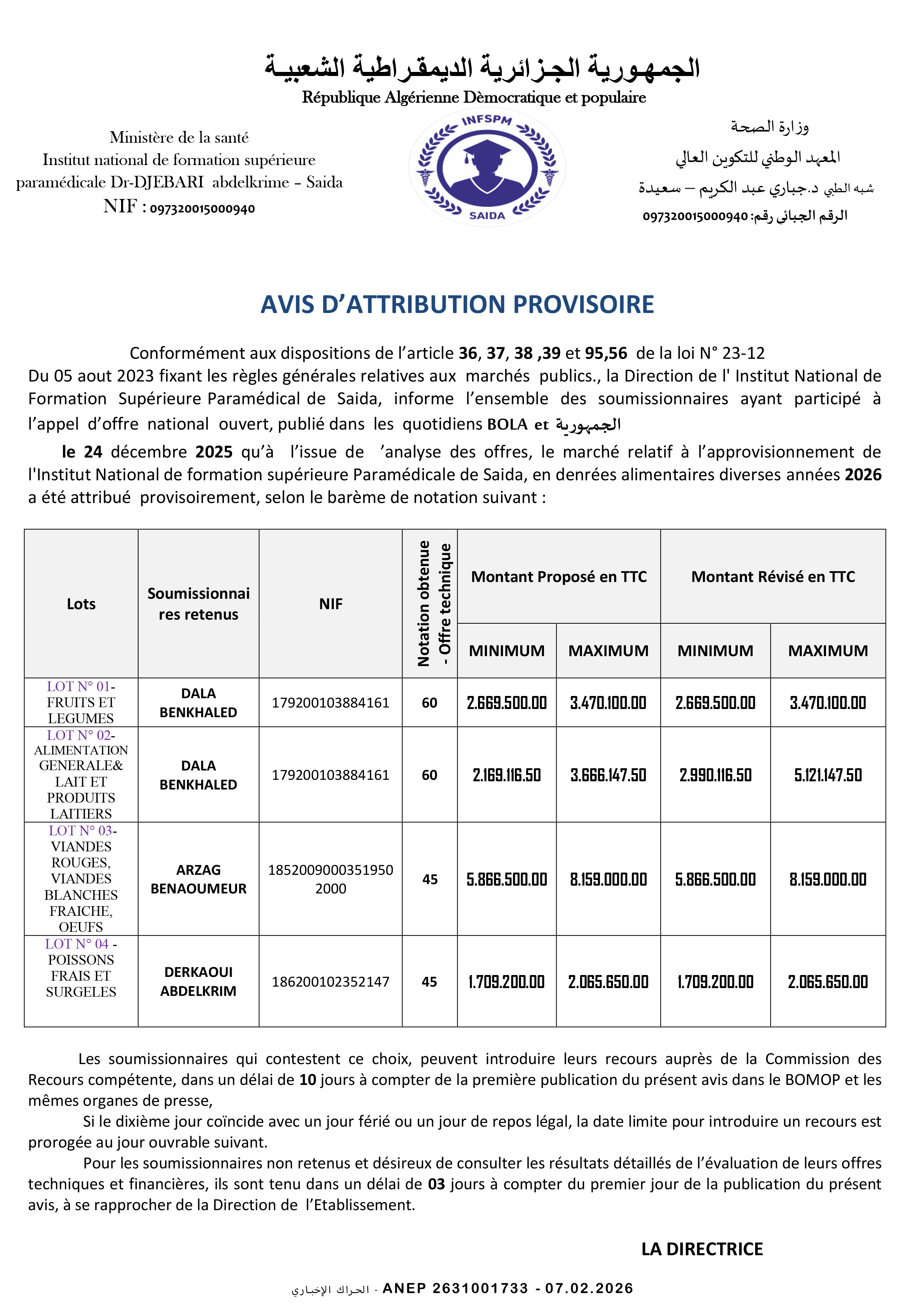 المعهد الوطني للتكوين العالي شبه الطبي - سعيدة