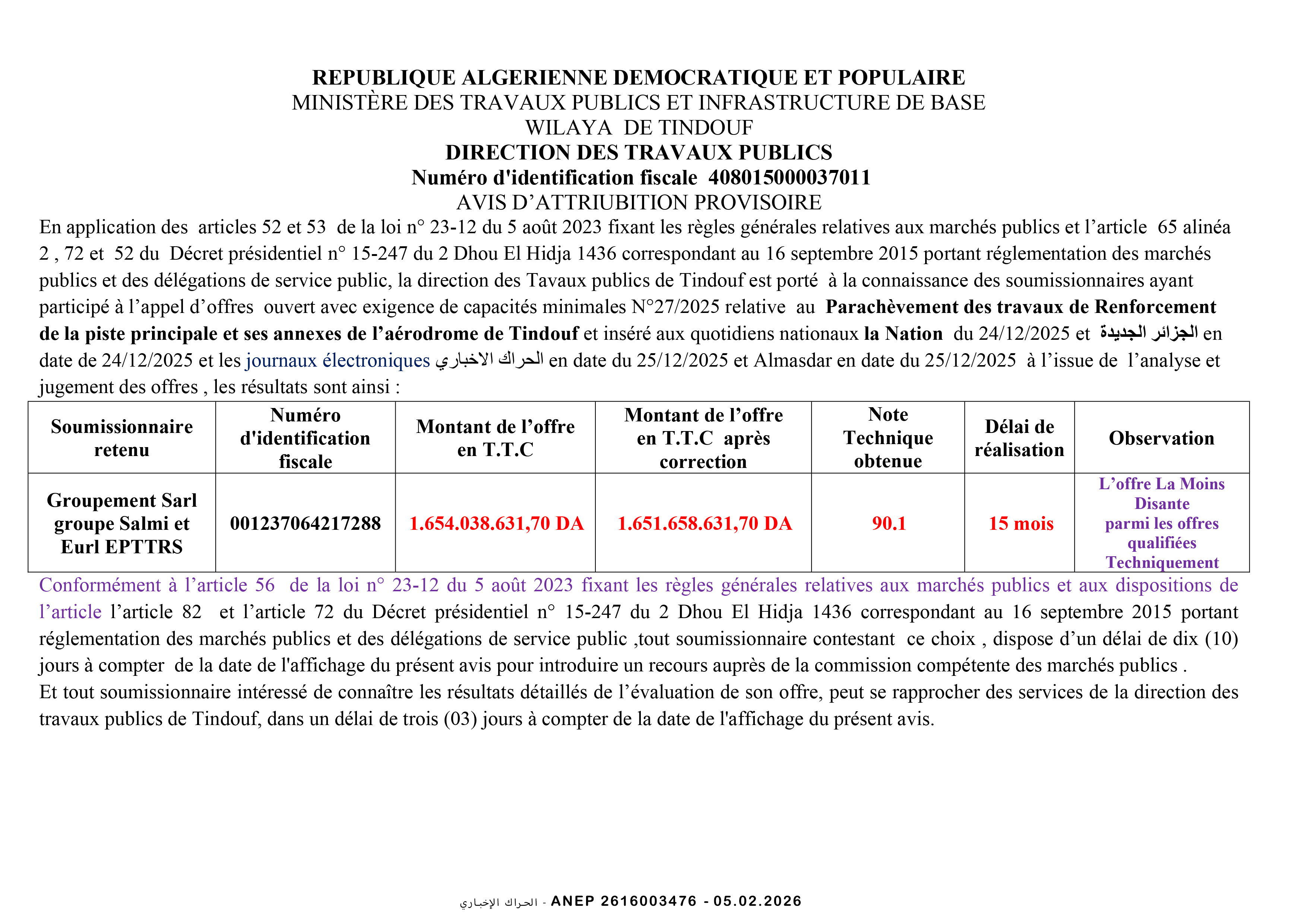 إعلانات الصفقات العمومية