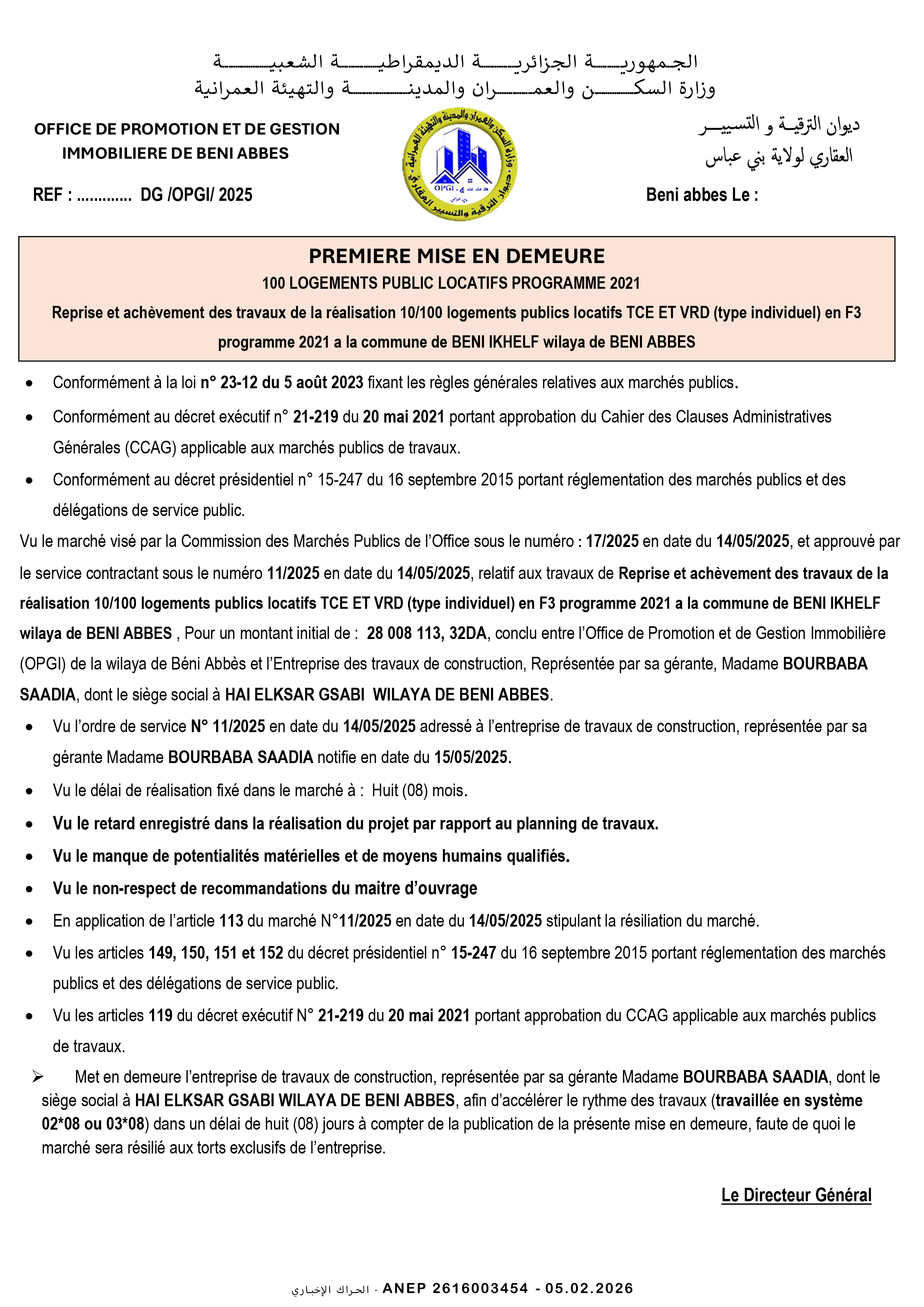 مديرية التعميير و الهندسة المعمارية و البناء لولاية الجلفة