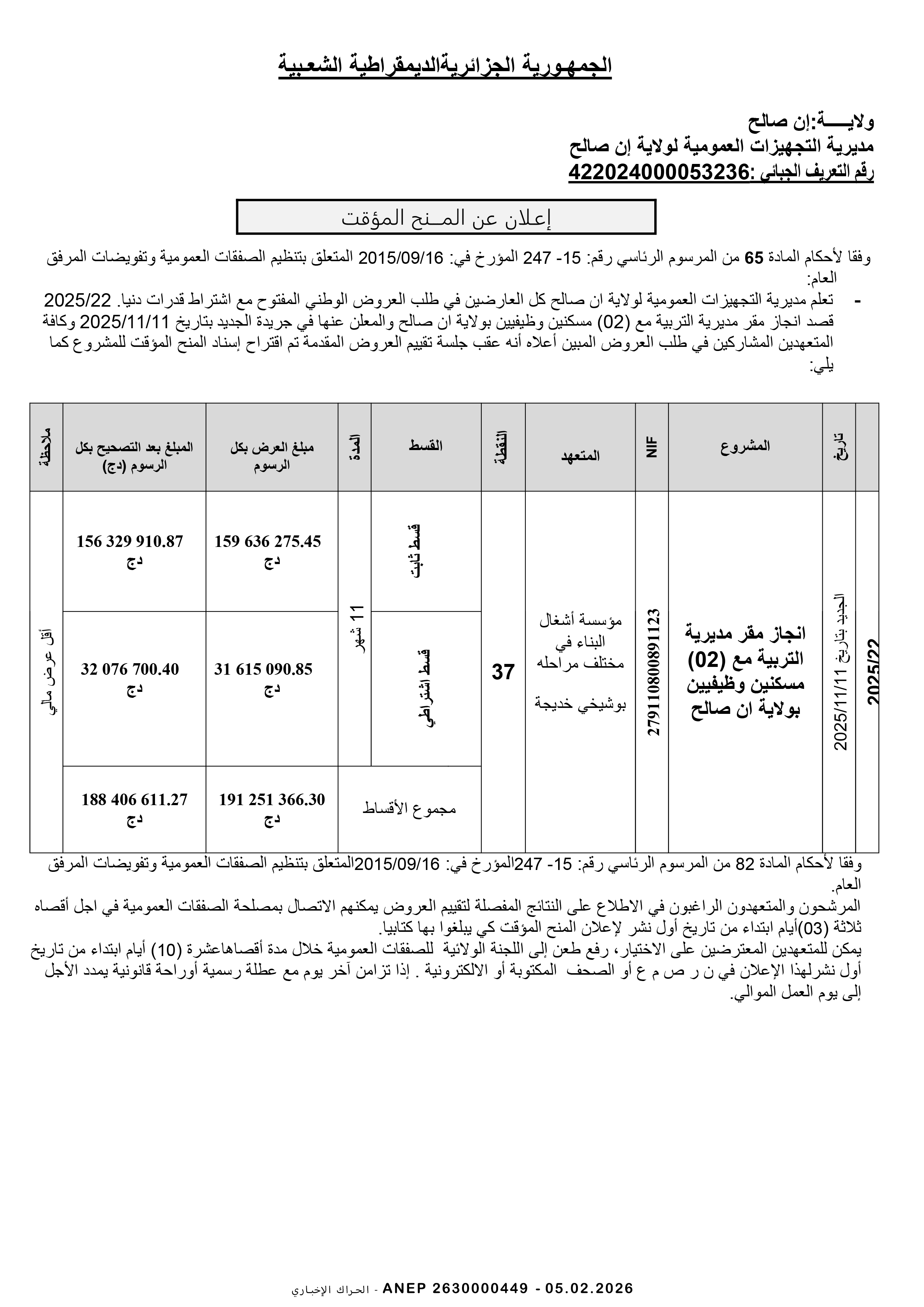 مديرية التجهيزات العمومية ولاية إن صالح