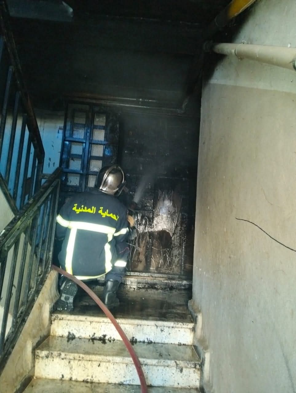 لأجل حريق 24 عداد كهربائي مجمعة بالطابق الأرضي لعمارة ( R+6)، بالوحدة الجوارية 09 المدينة الجديدة علي منجلي.