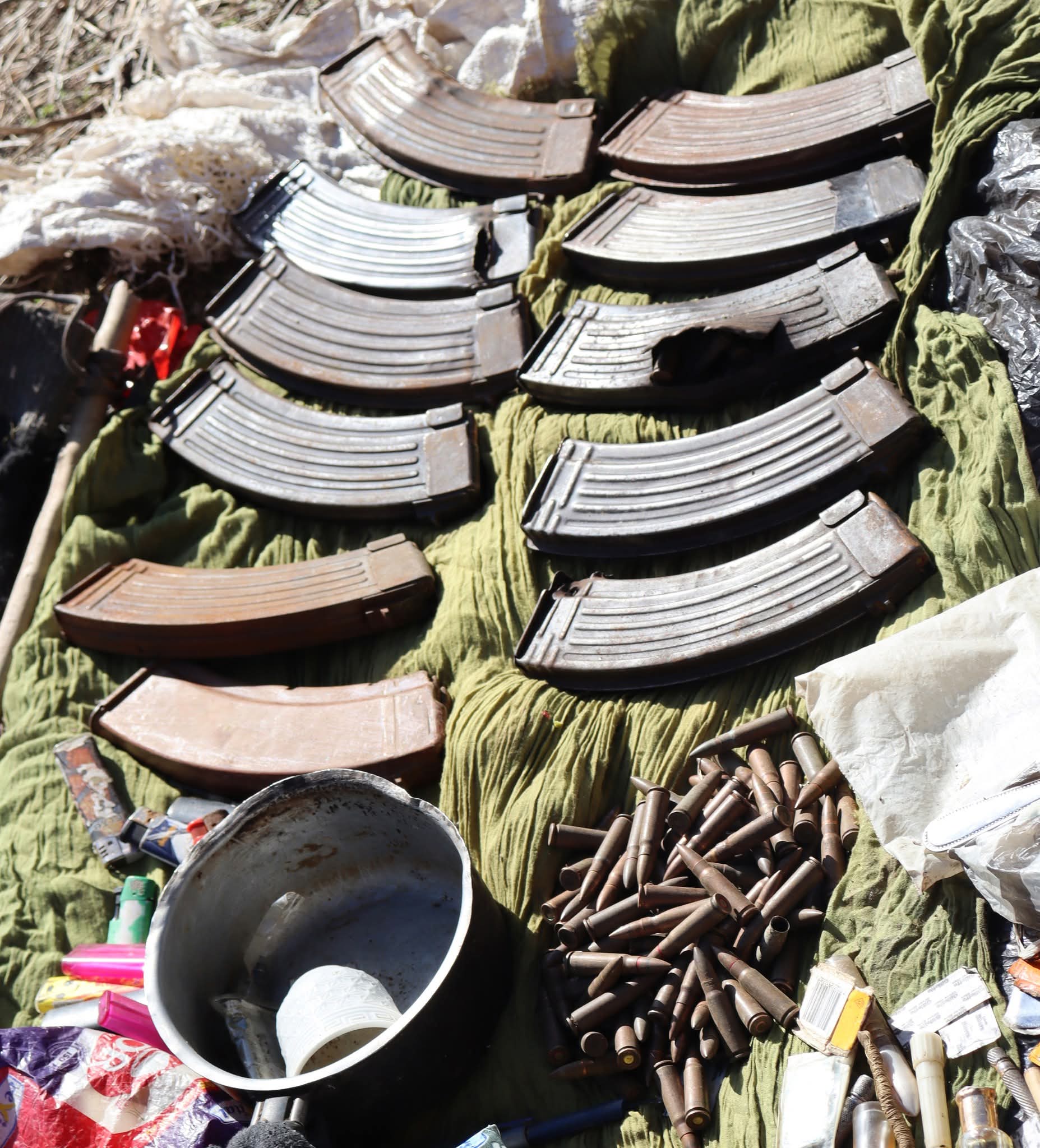 وأوضح بيان لوزارة الدفاع الوطني أن العملية أسفرت عن استرجاع أربع (04) مسدسات رشاشة من نوع كلاشنيكوف، إلى جانب قنبلتين (02) يدويتين، وأحد عشر (11) مخزن ذخيرة، وأربع (04) نظارات ميدان، وستة (06) هواتف نقالة مرفقة بإحدى عشرة (11) شريحة هاتفية، إضافة إلى ست عشرة (16) شريحة ذاكرة وأغراض أخرى.
