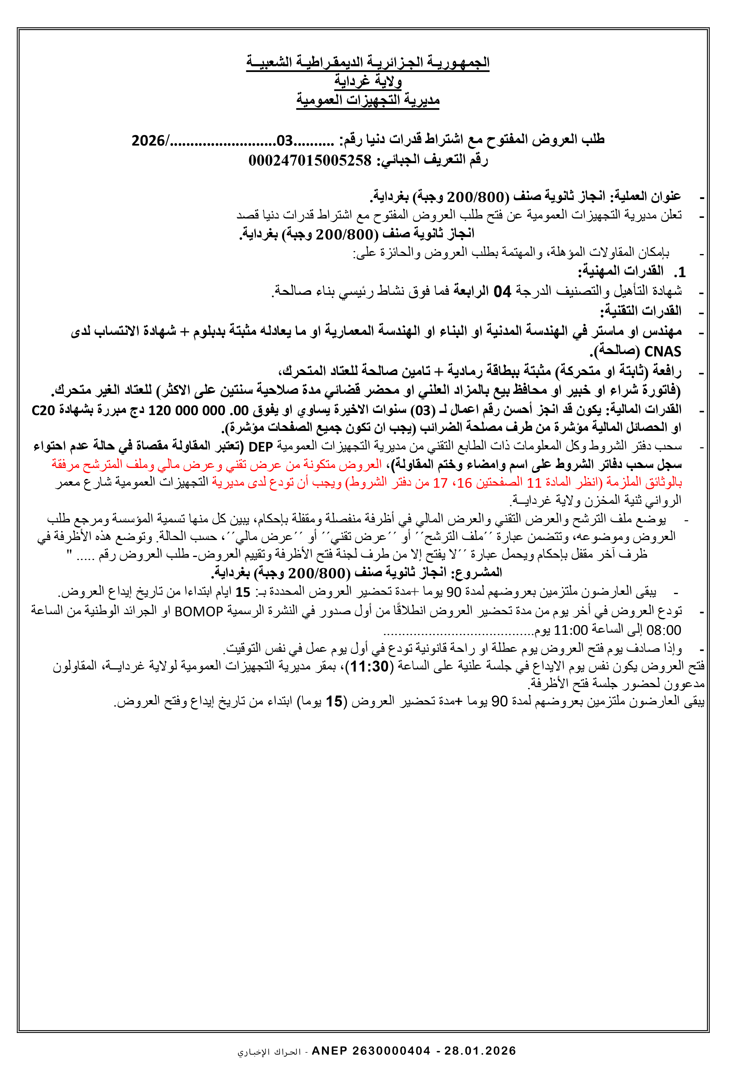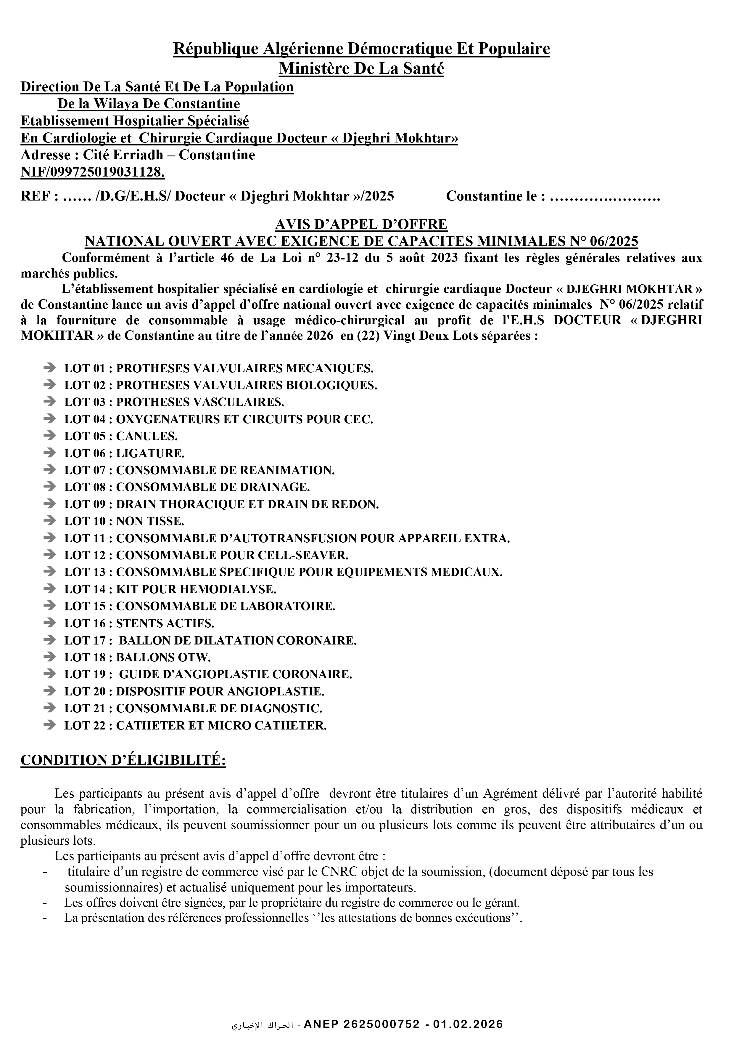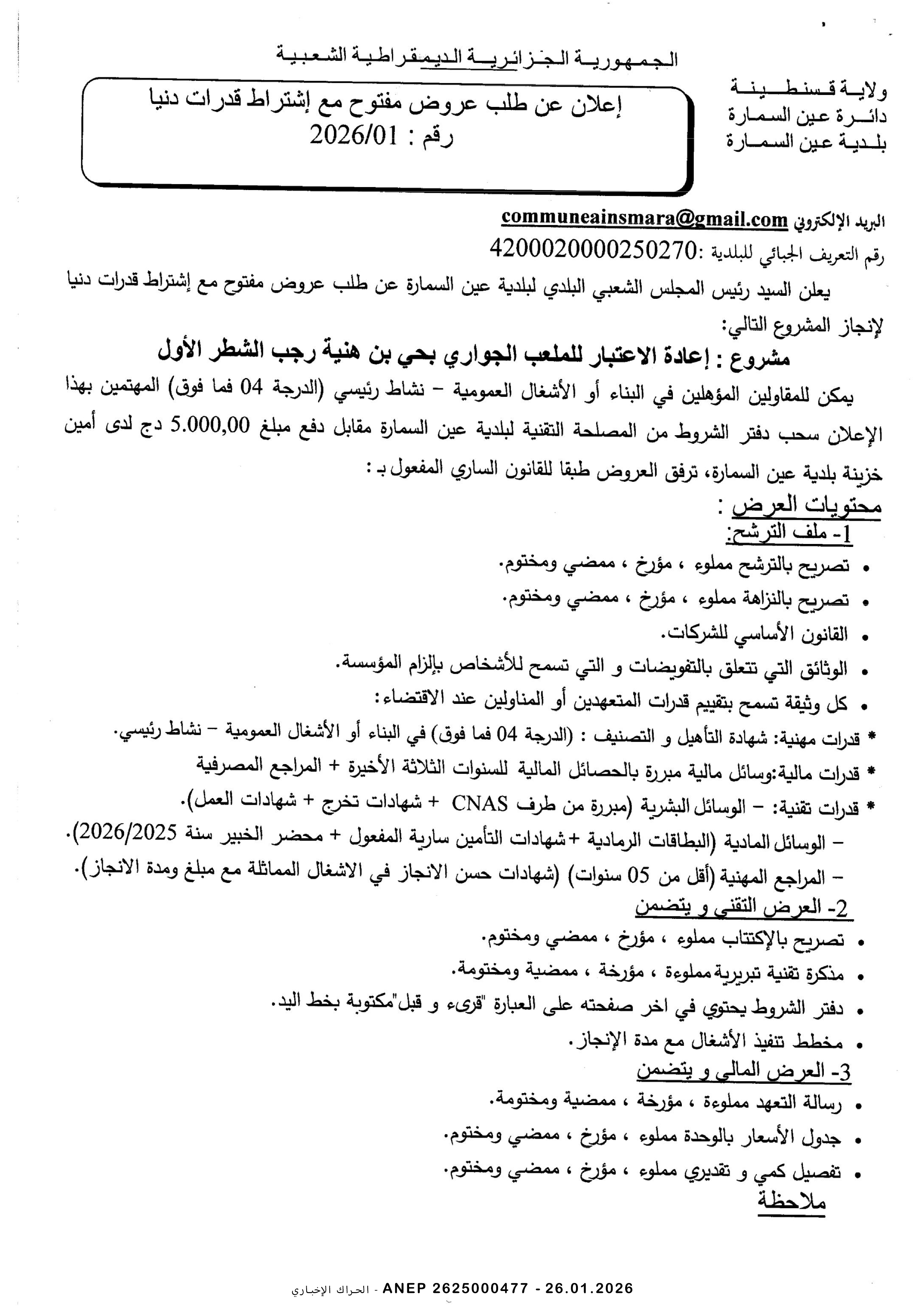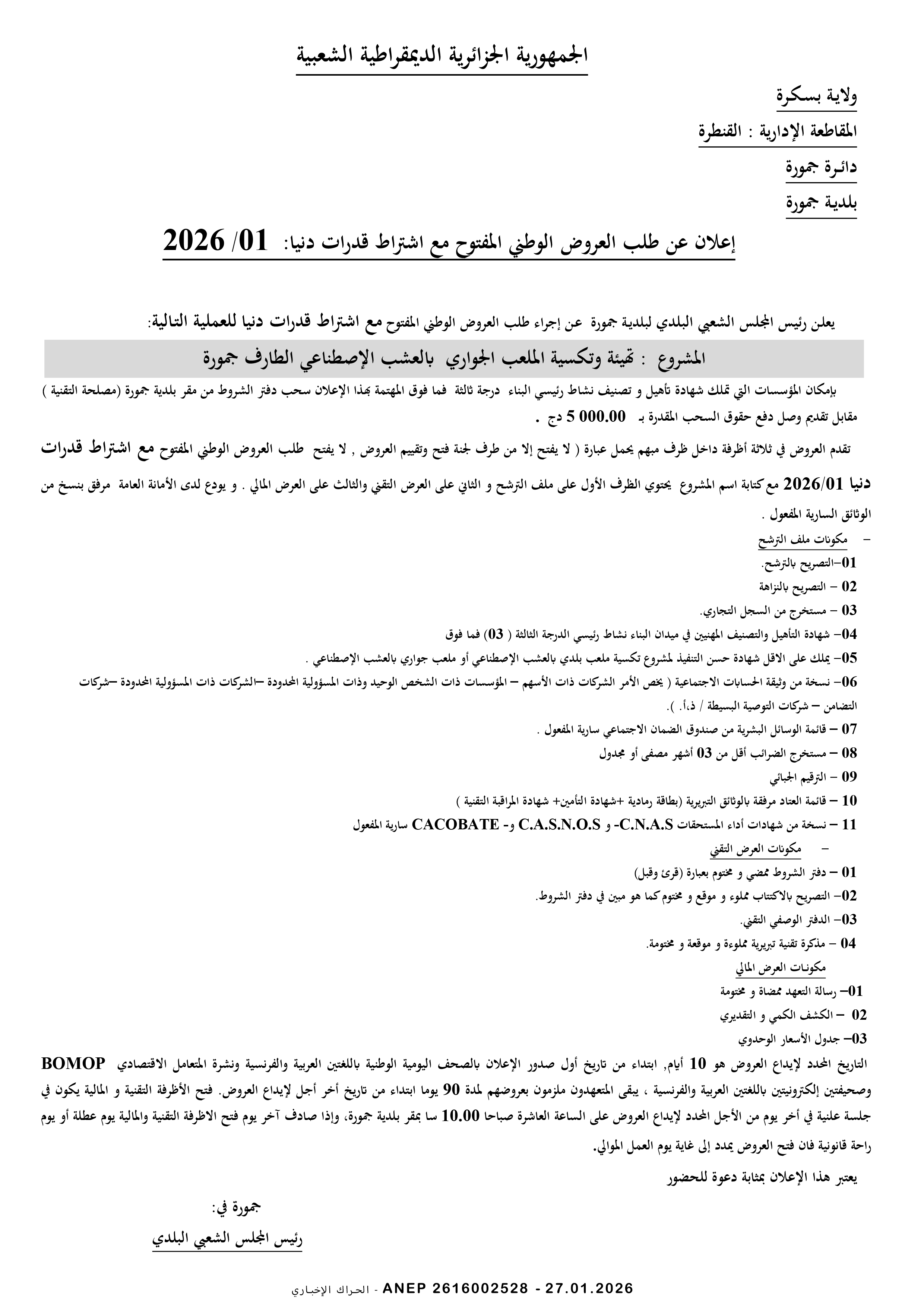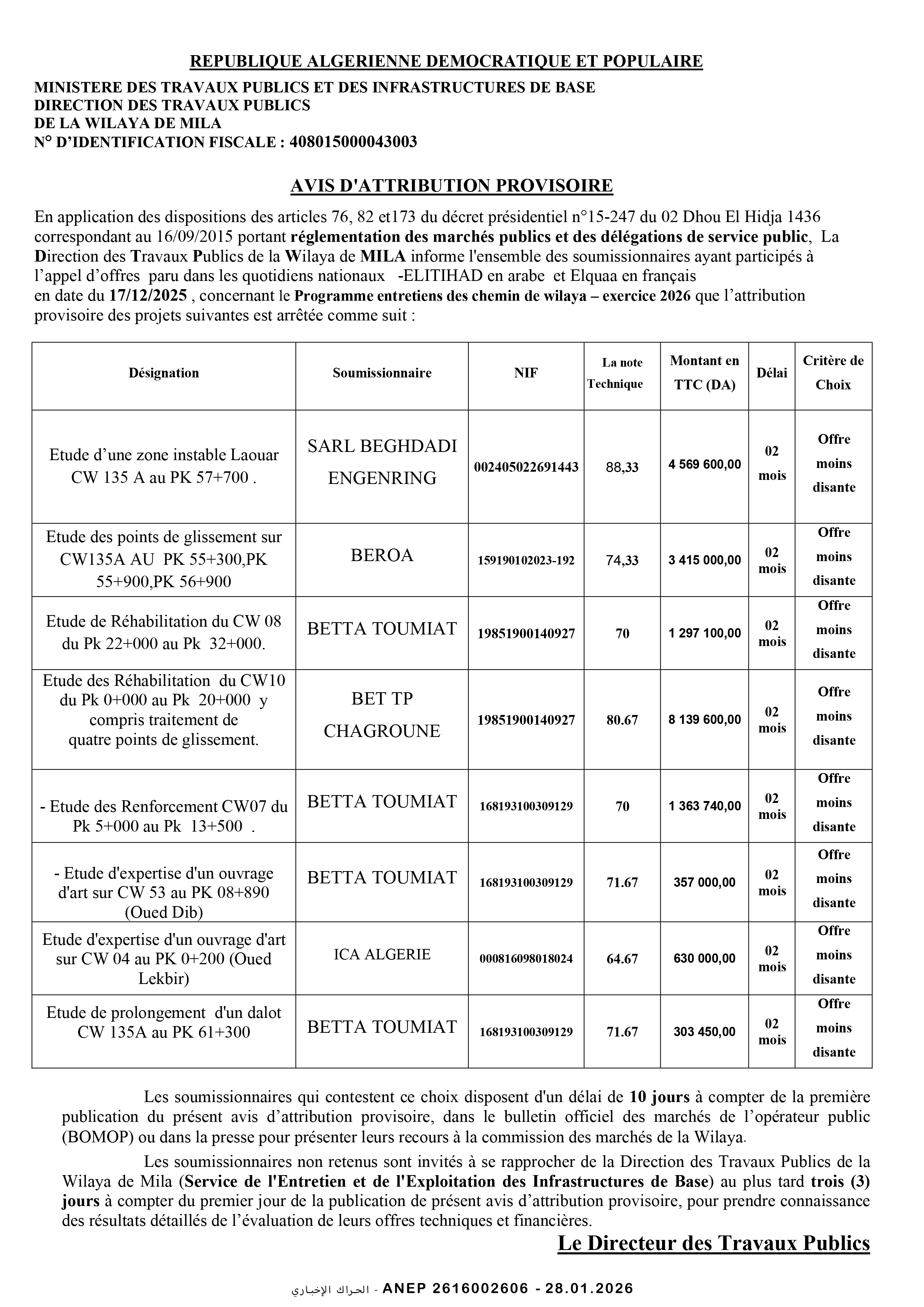 إعلان عن تصحيح طلب عروض وطني مفتوح