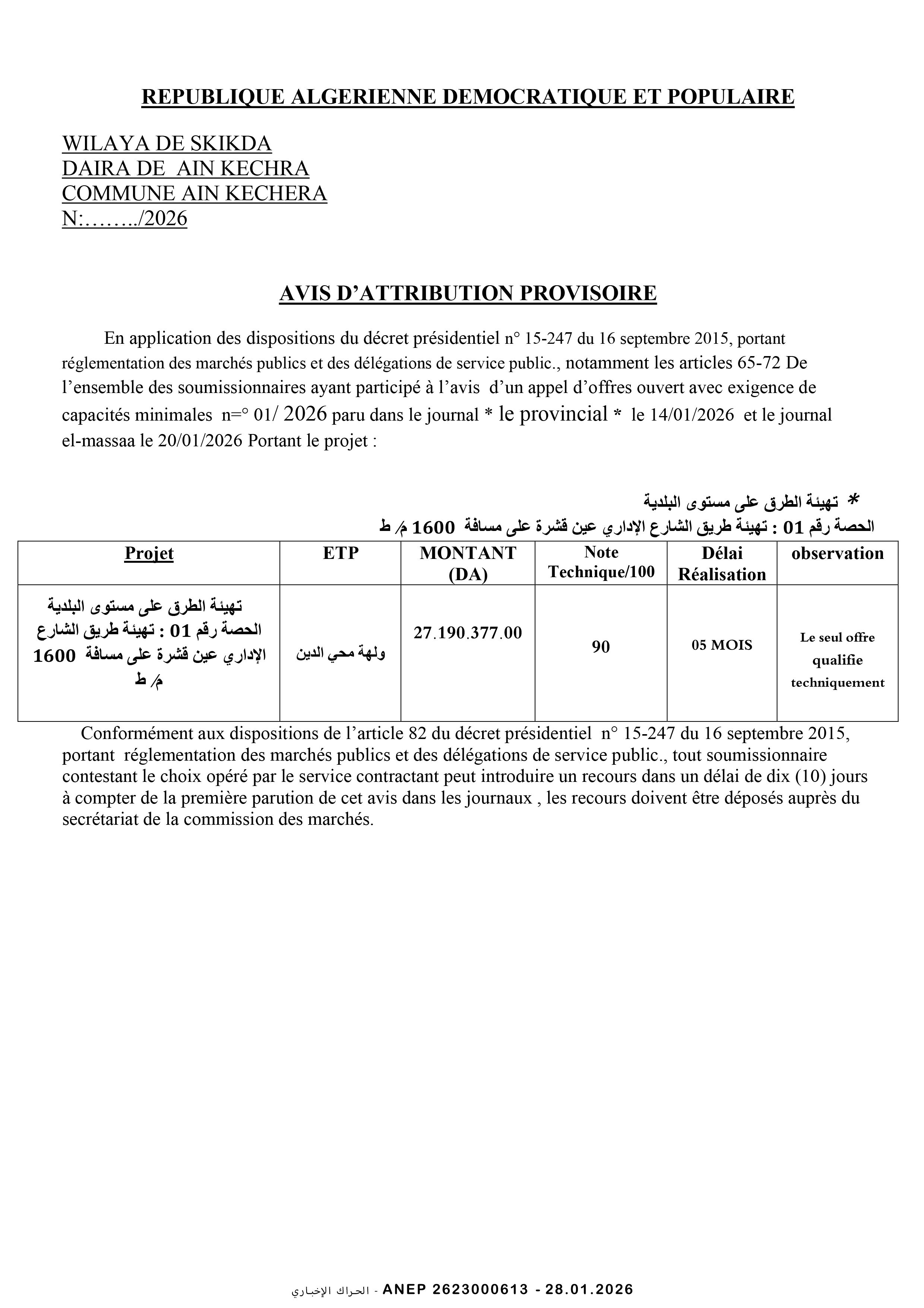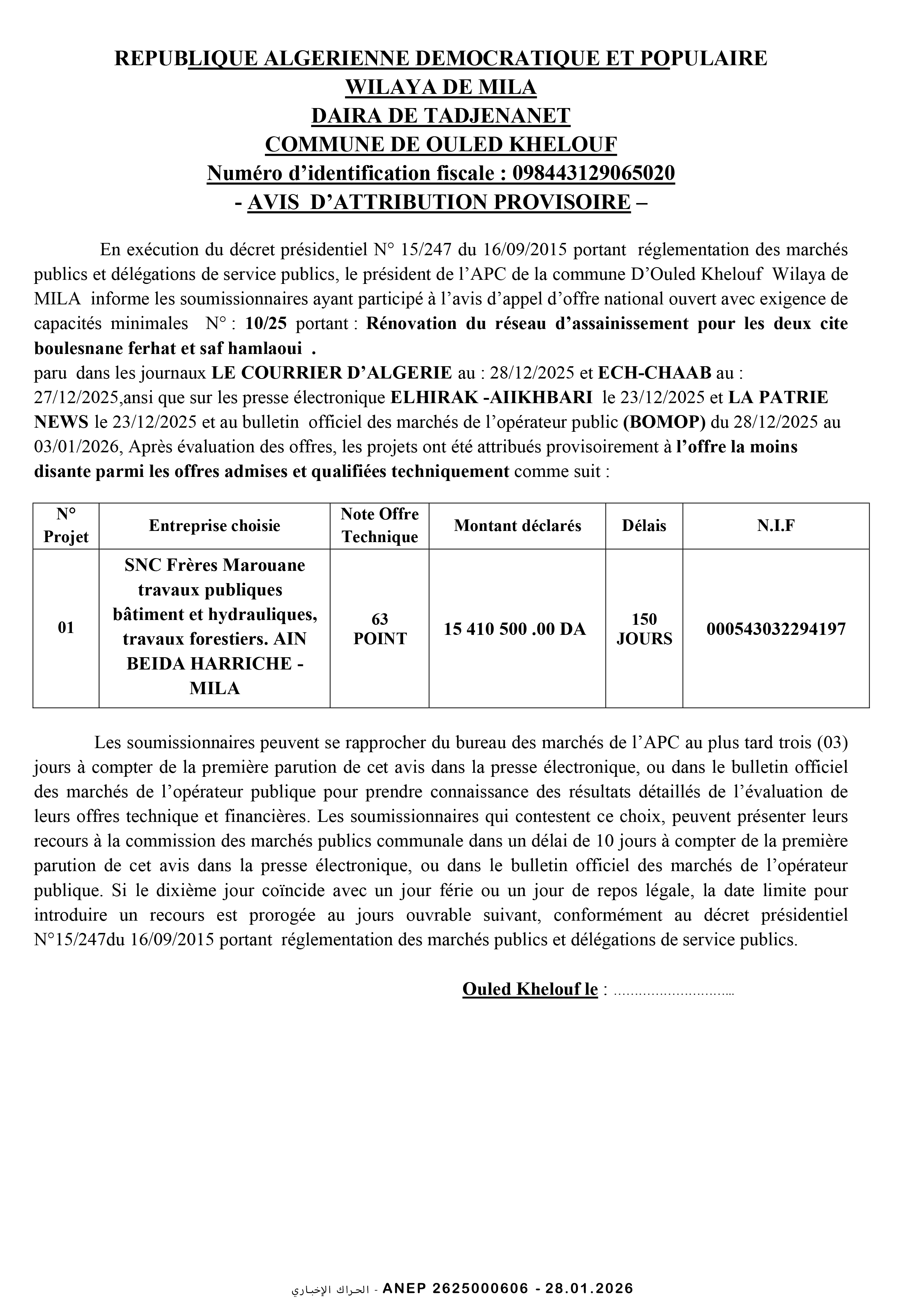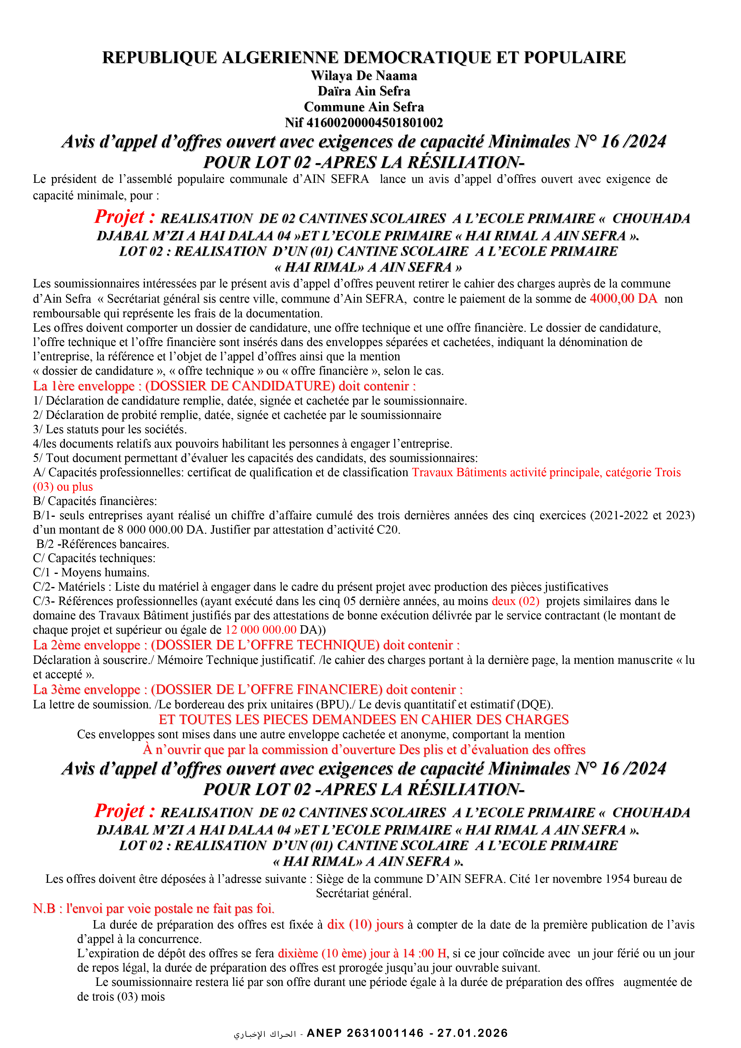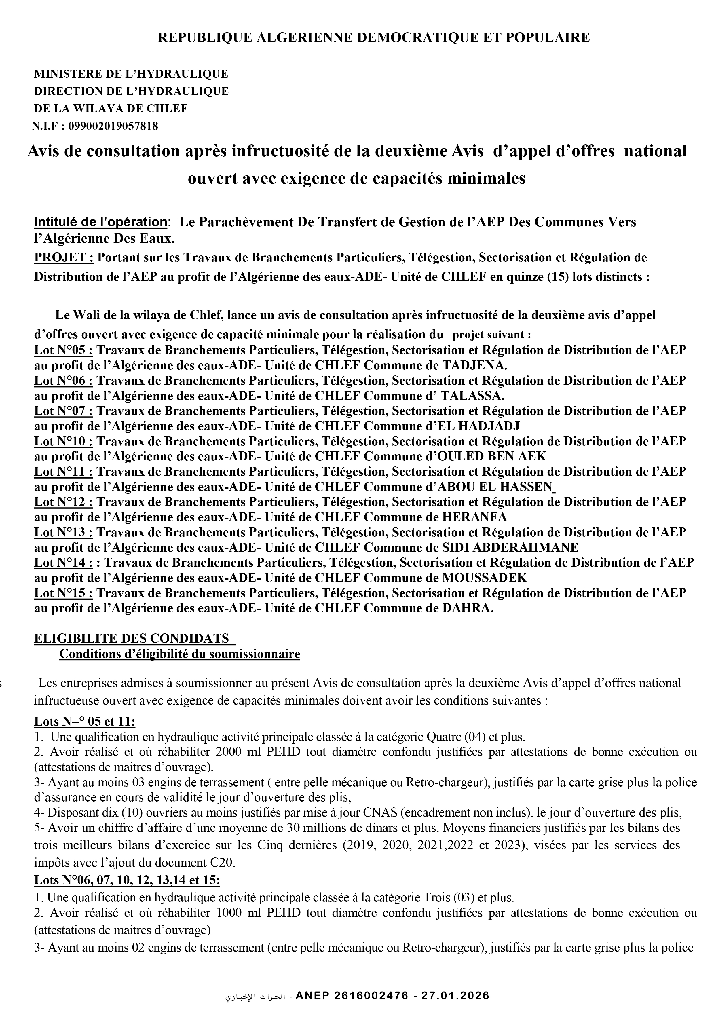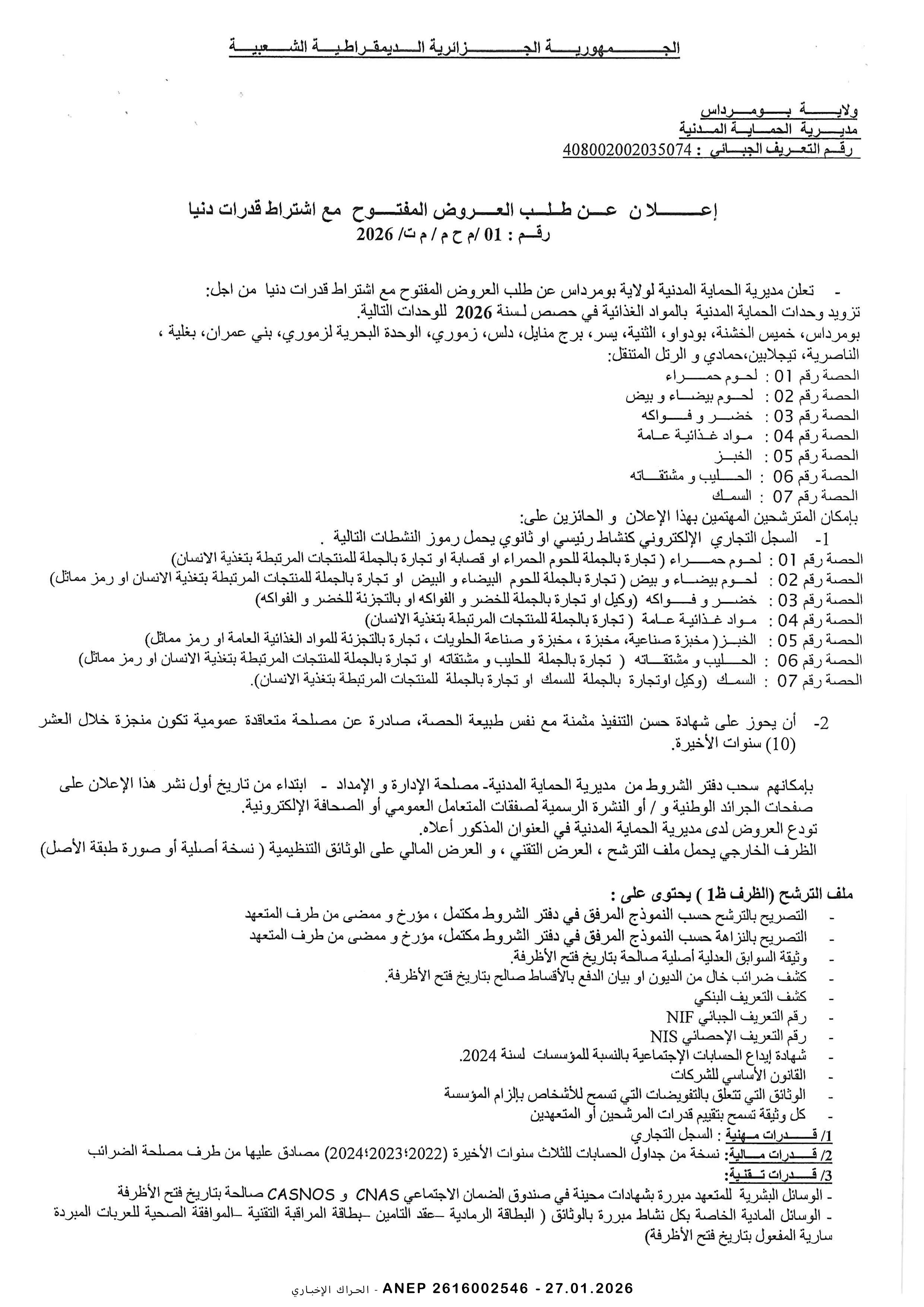 إعلان عن تصحيح طلب عروض وطني مفتوح