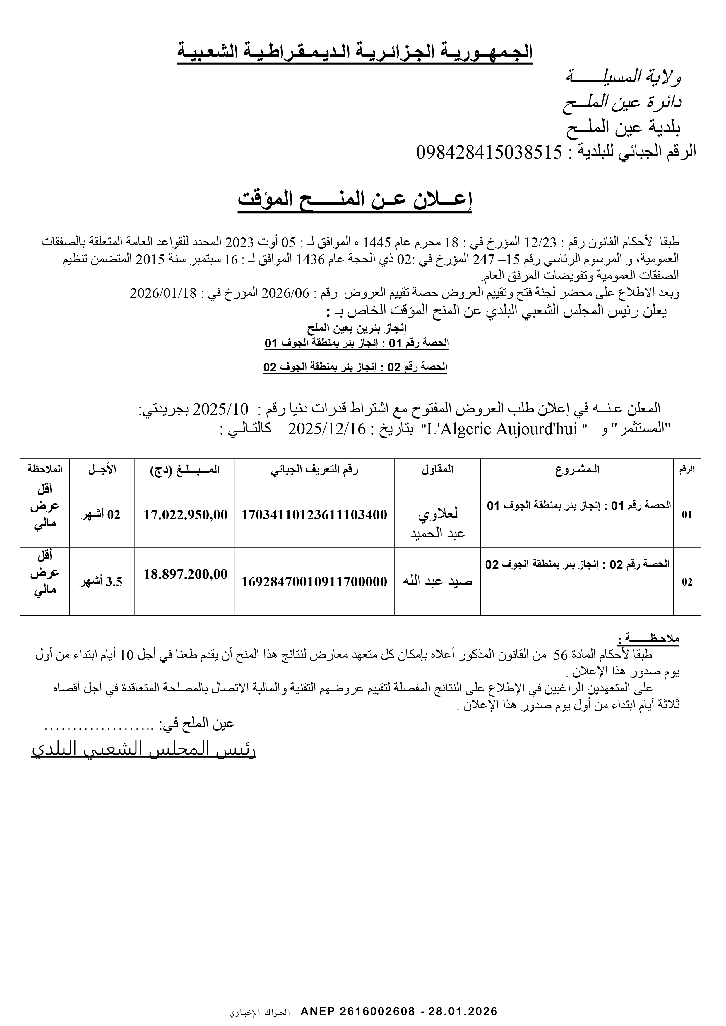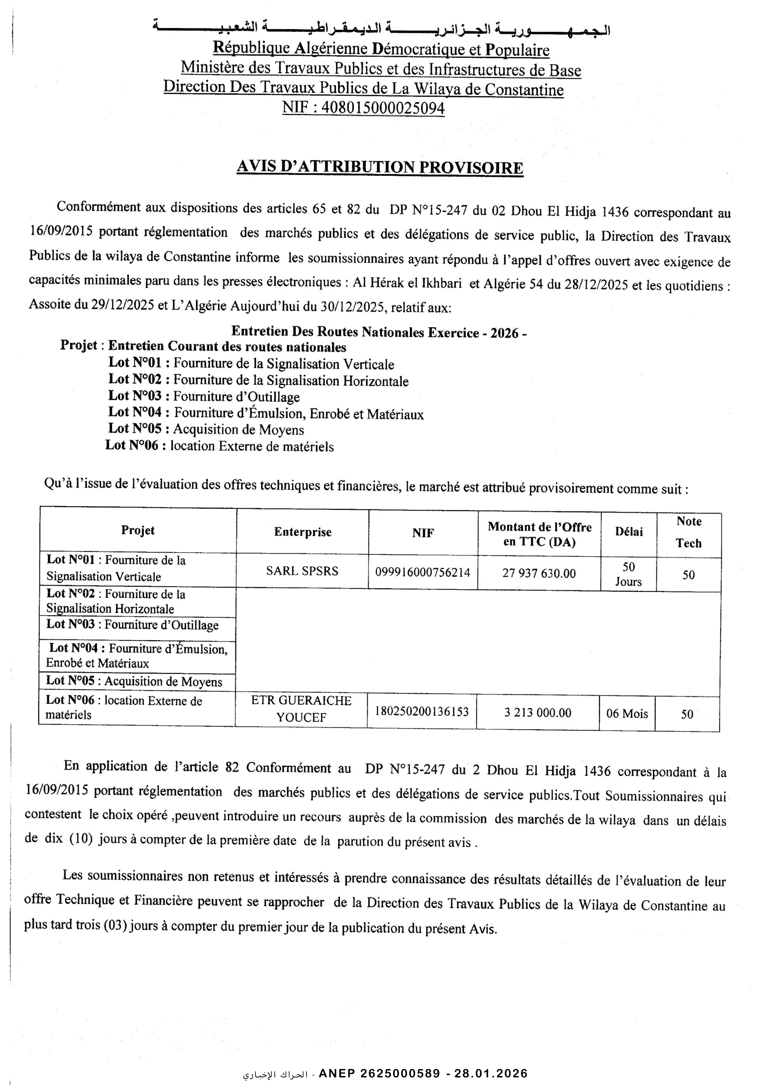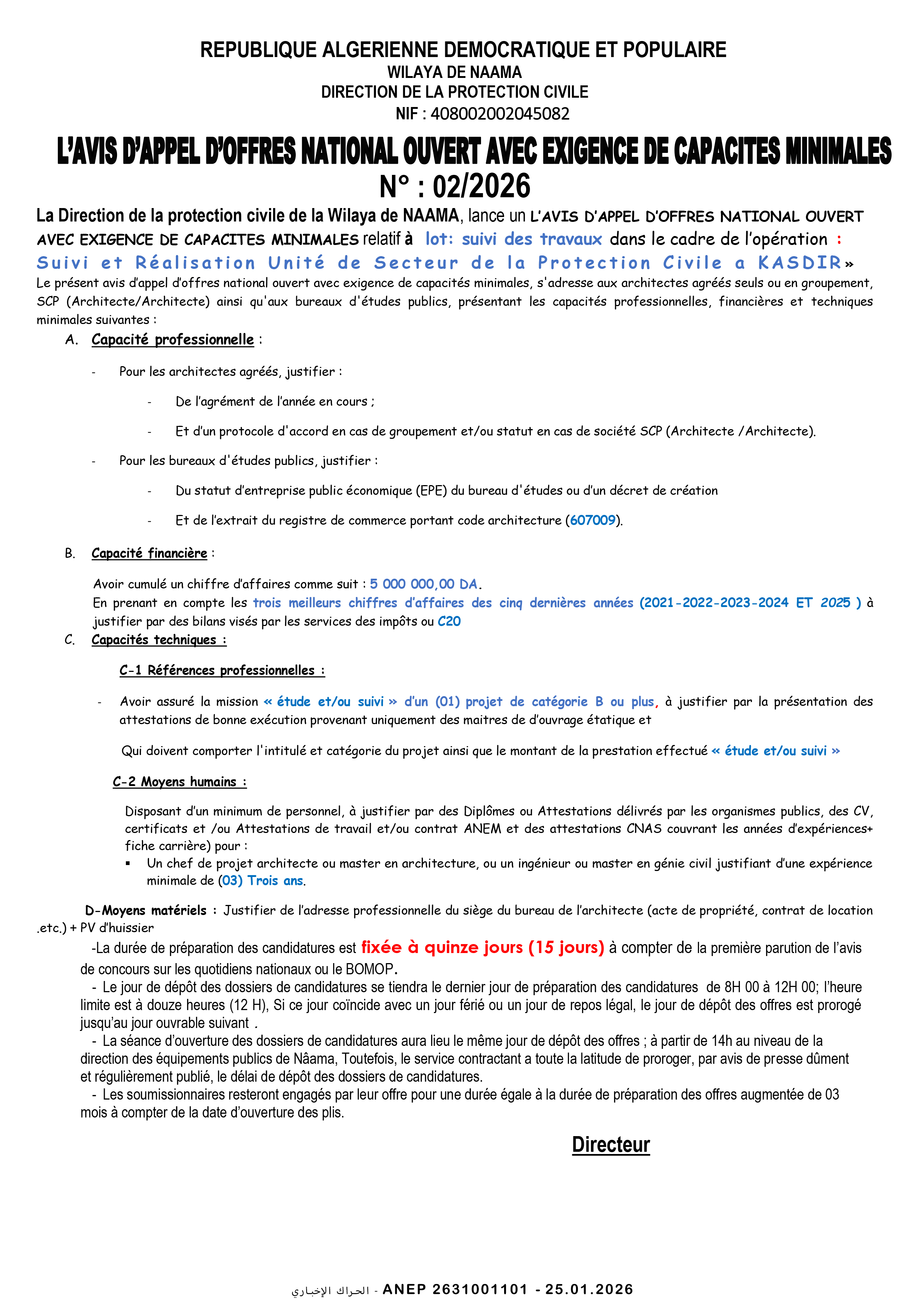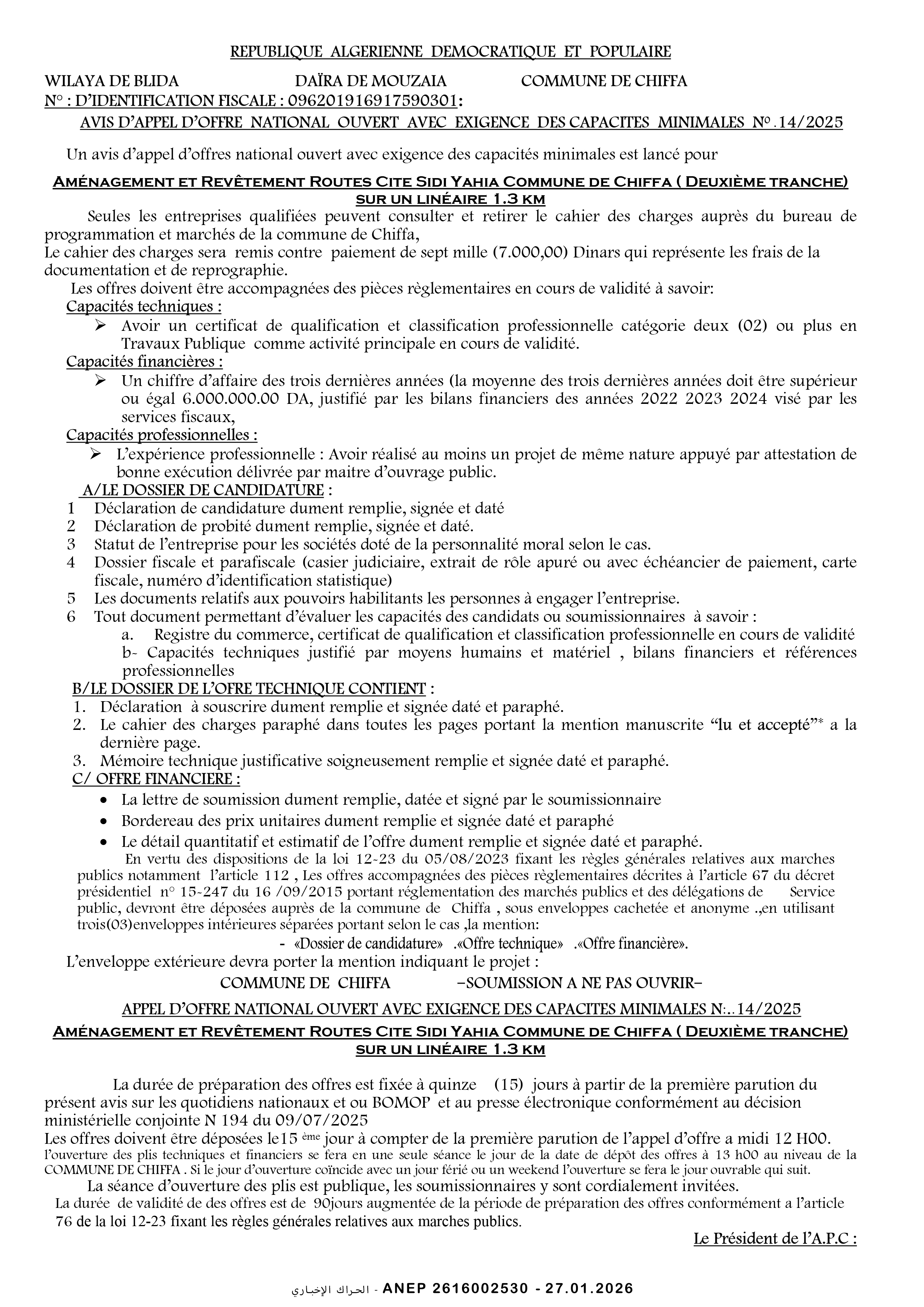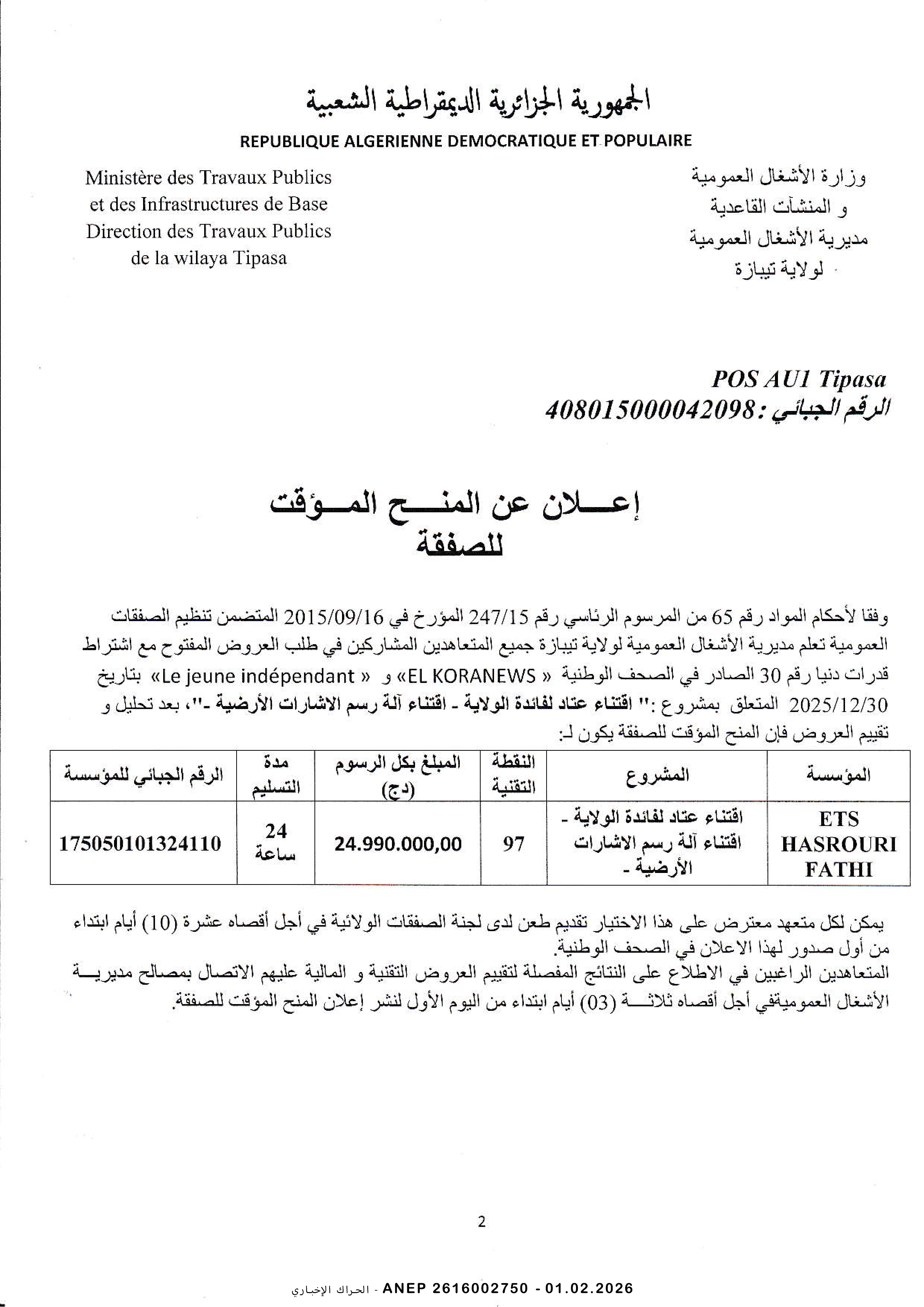 إعلان عن تصحيح طلب عروض وطني مفتوح