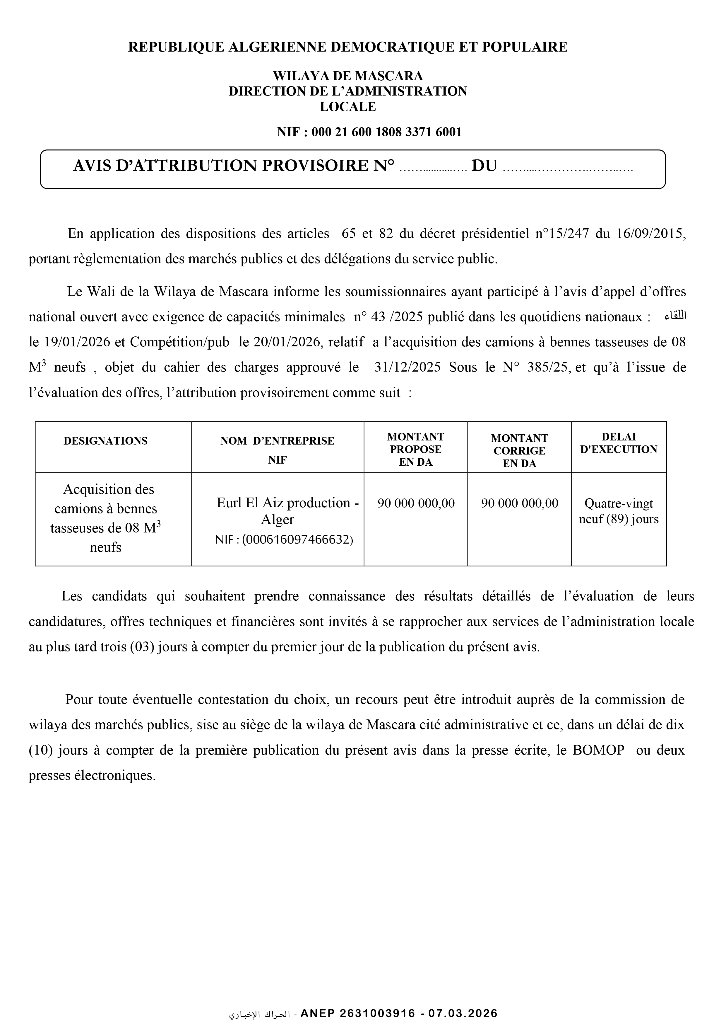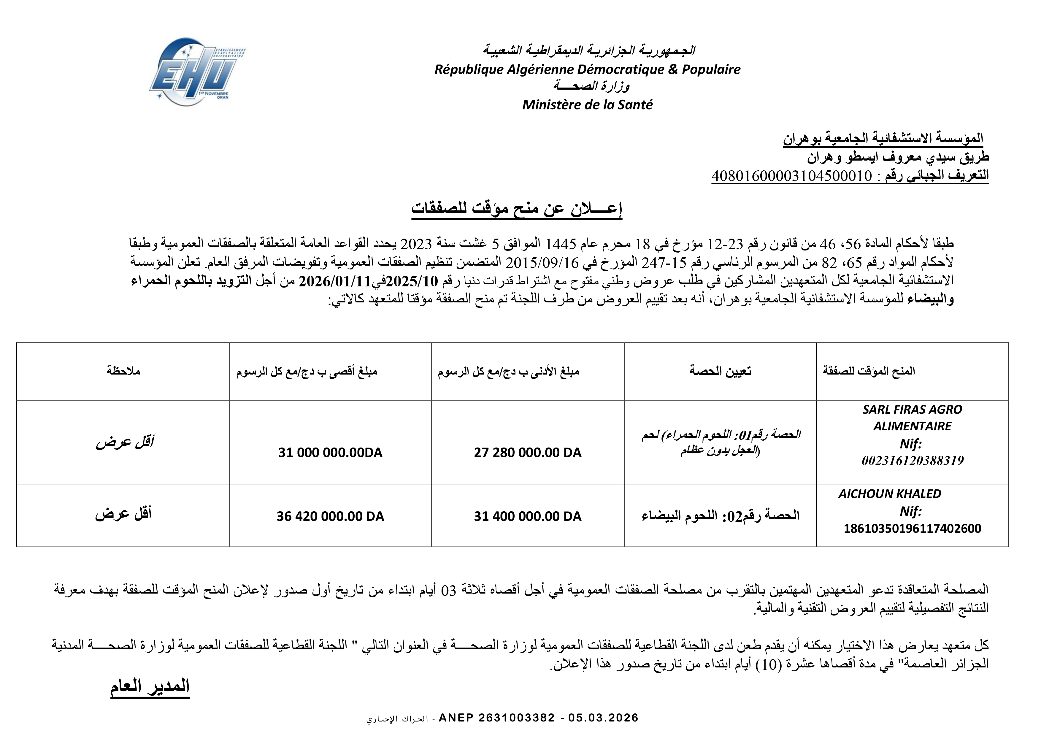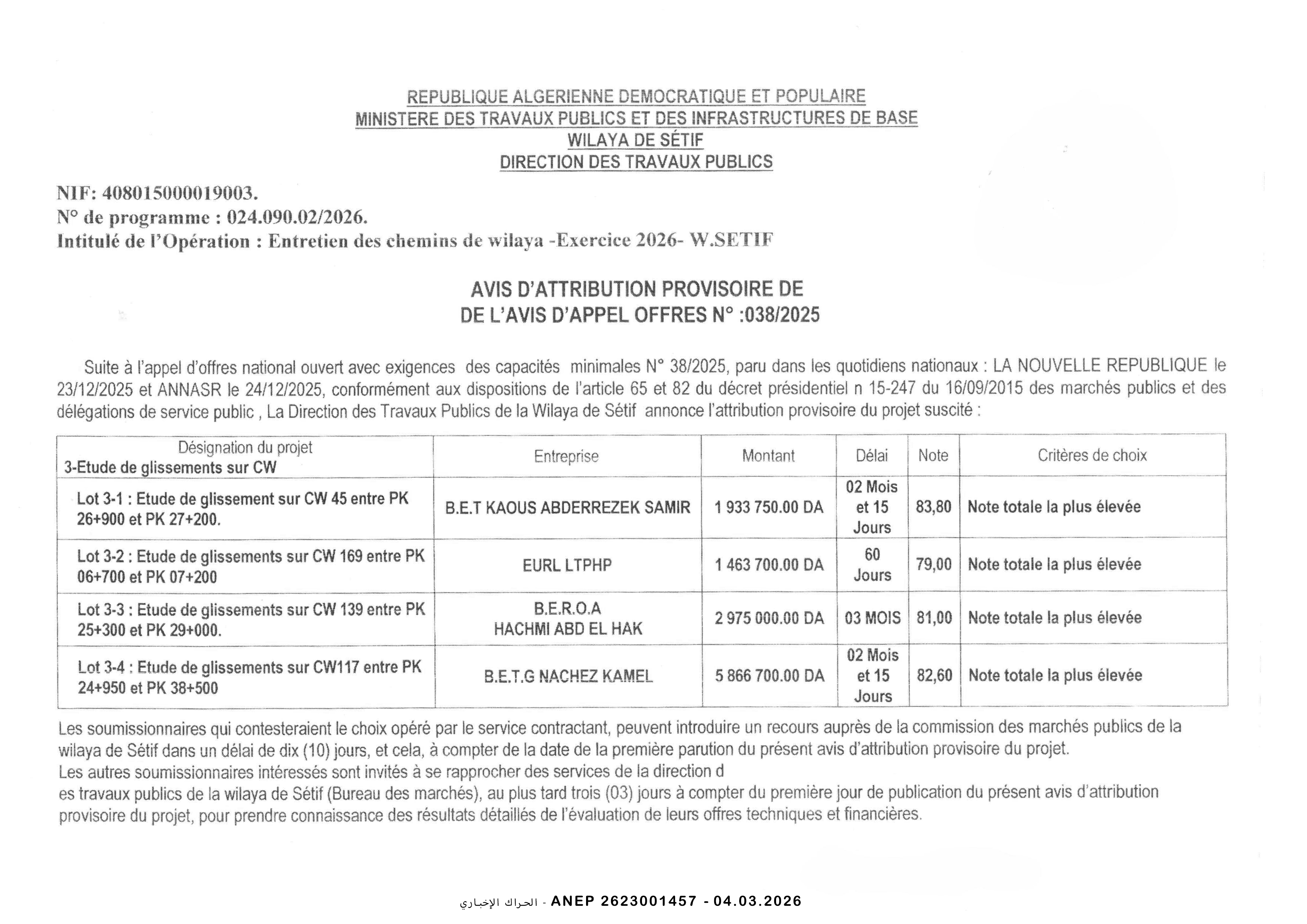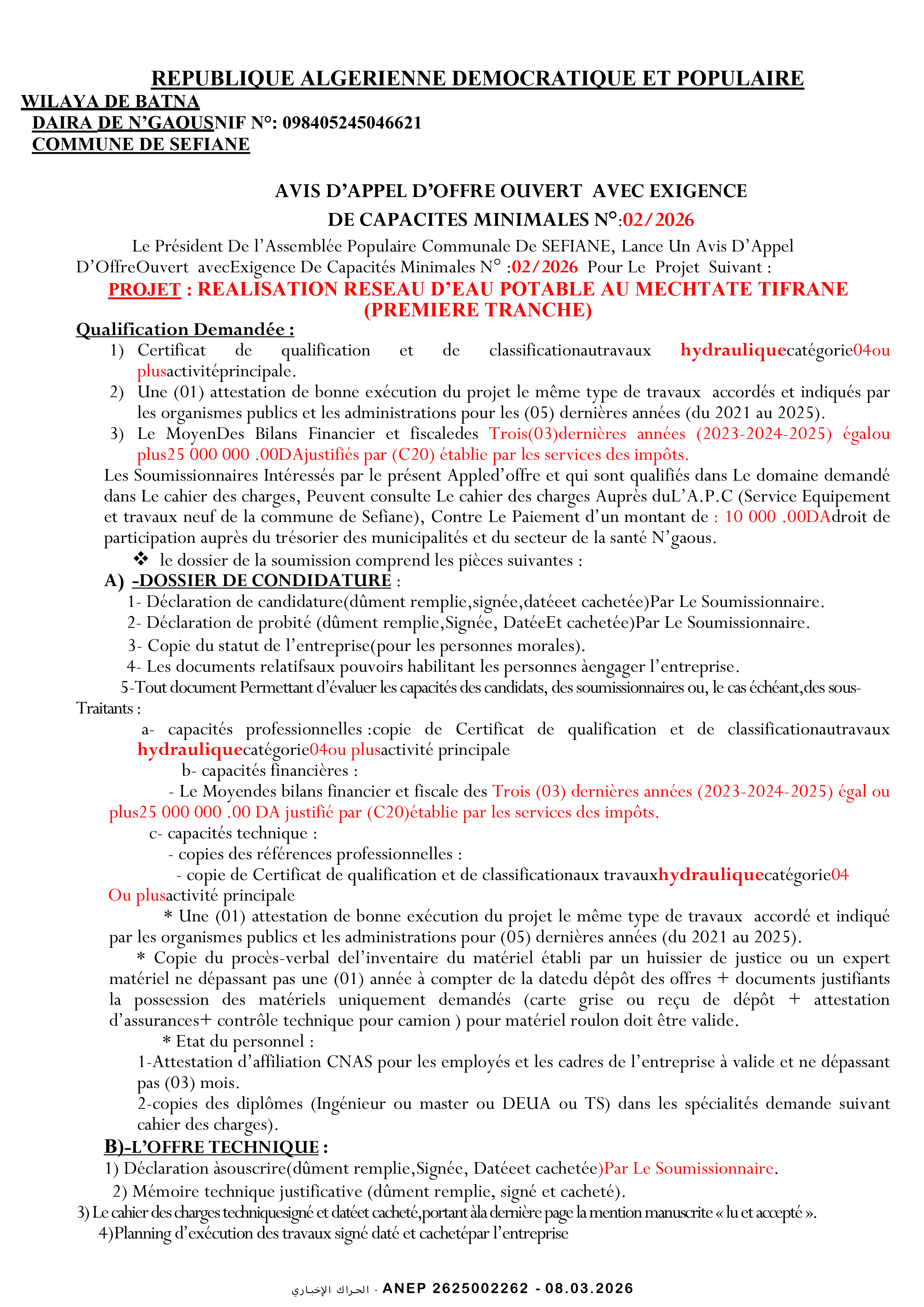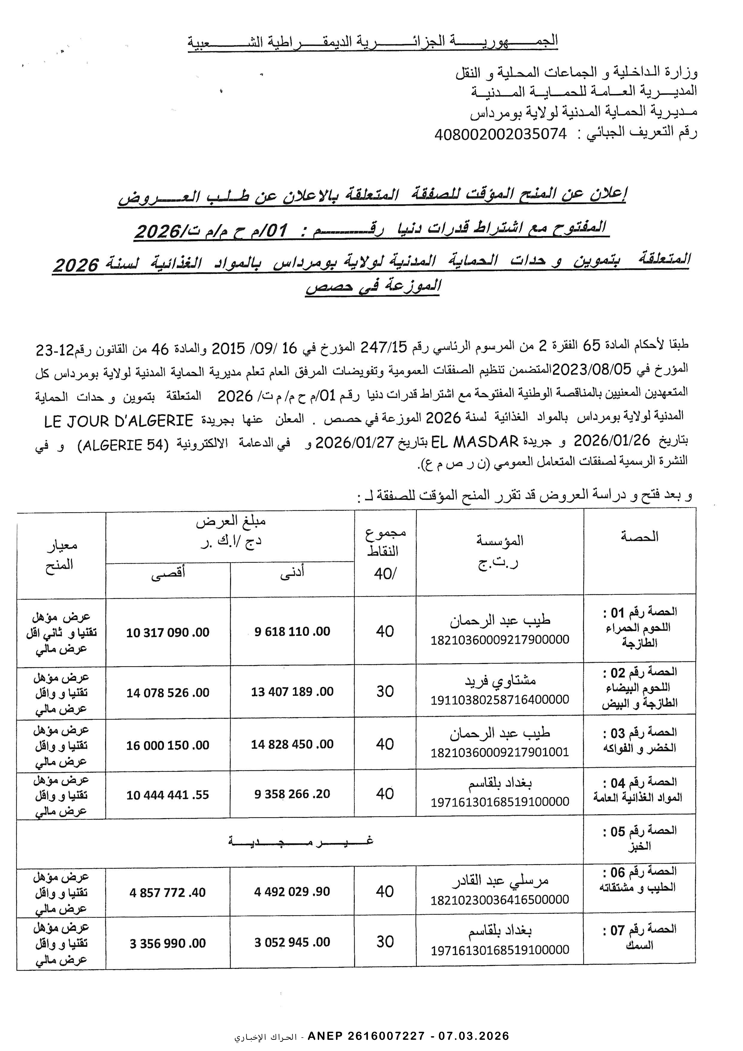 إعلان عن طلب عروض وطني محدود