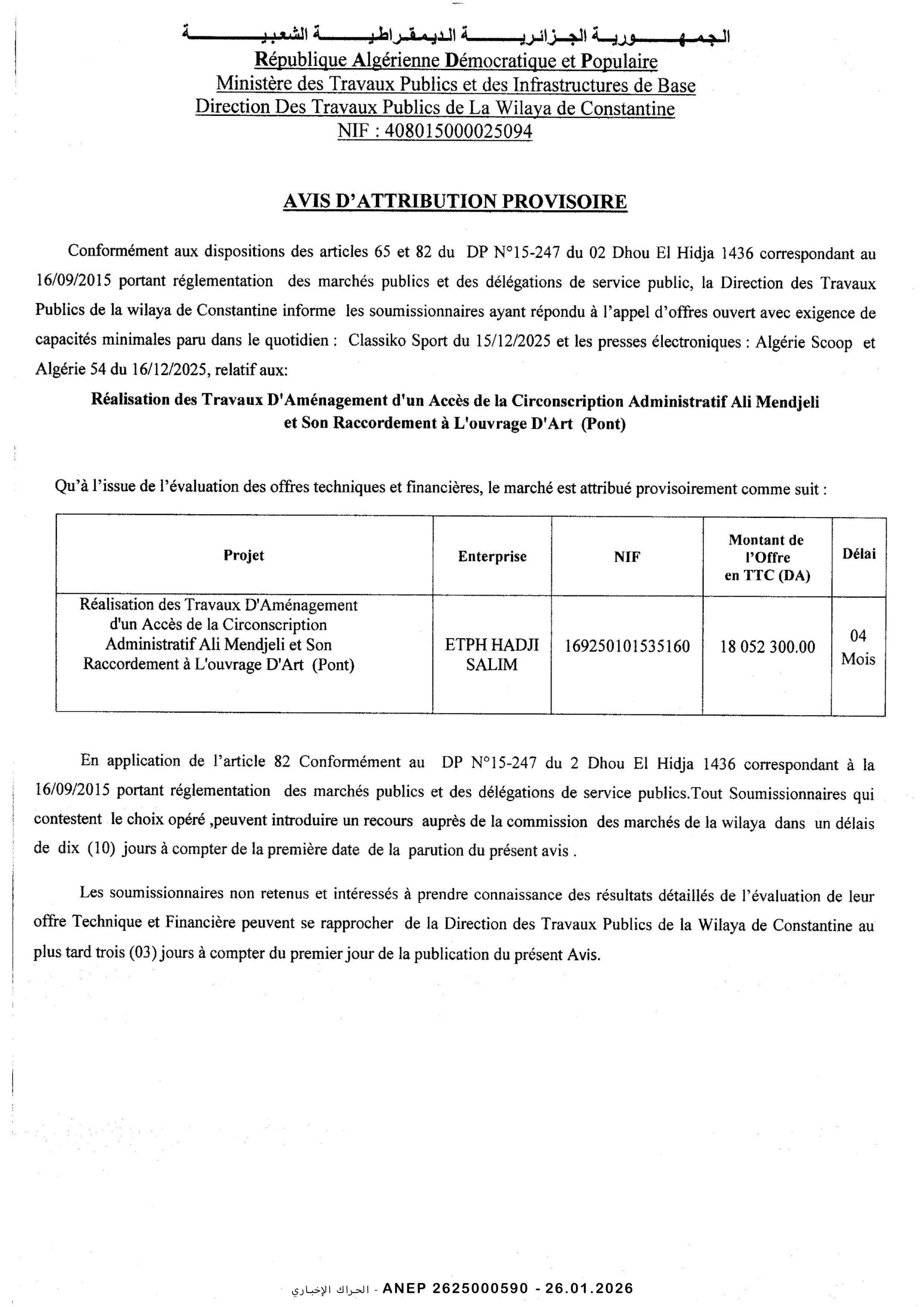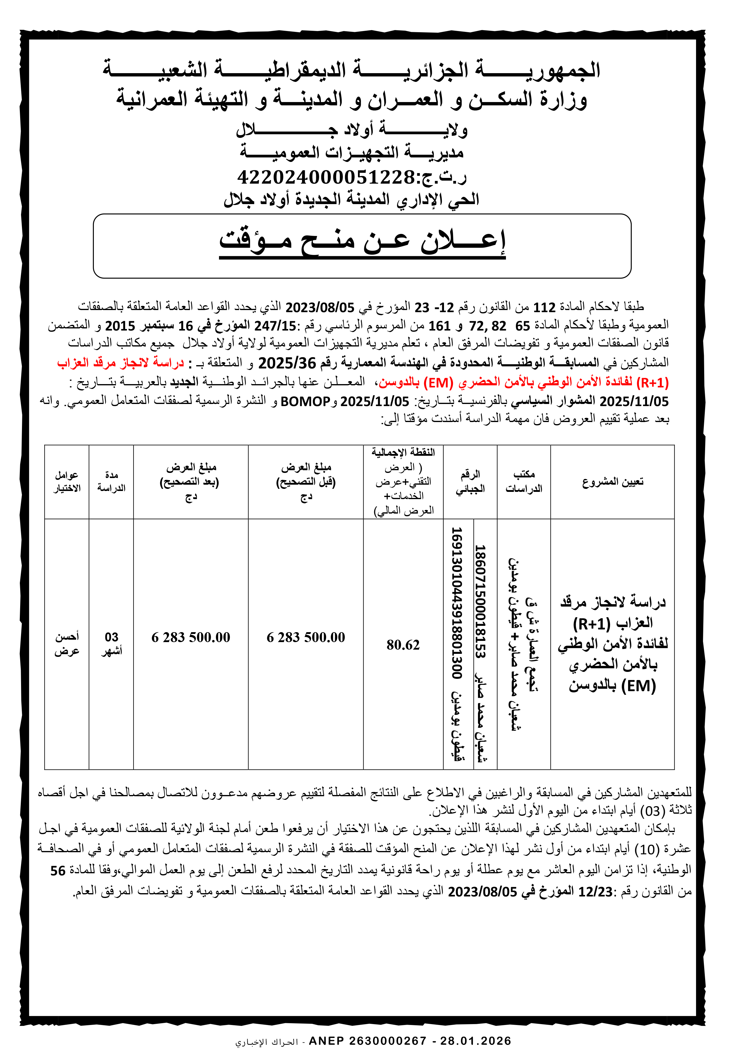 مديرية التجهيزات العمومية ولاية أولاد جلال
