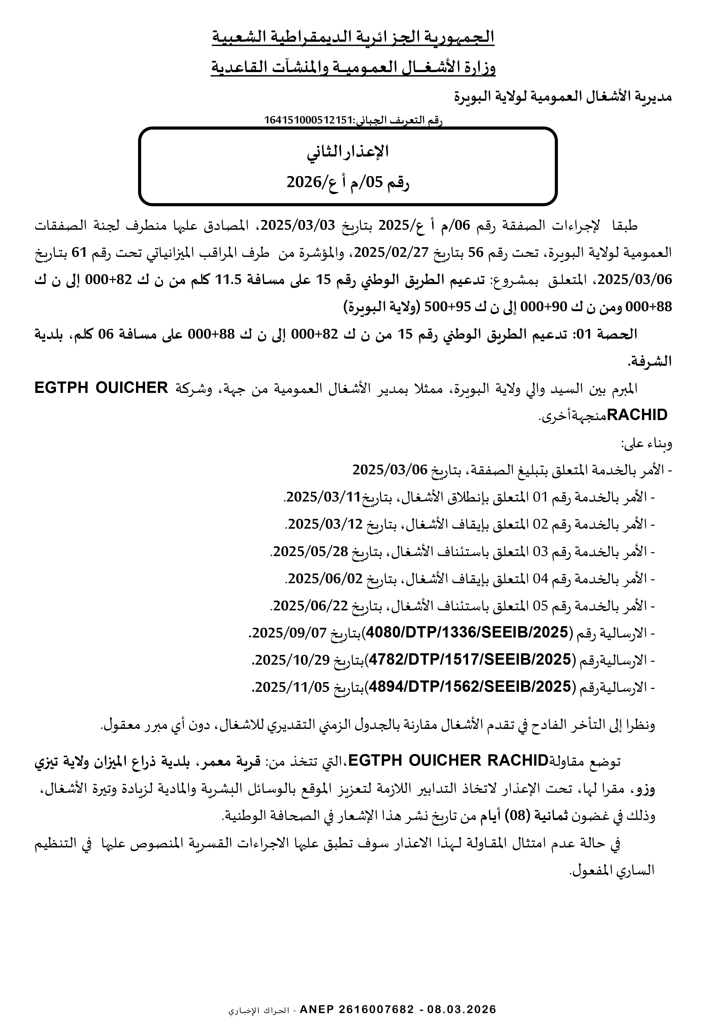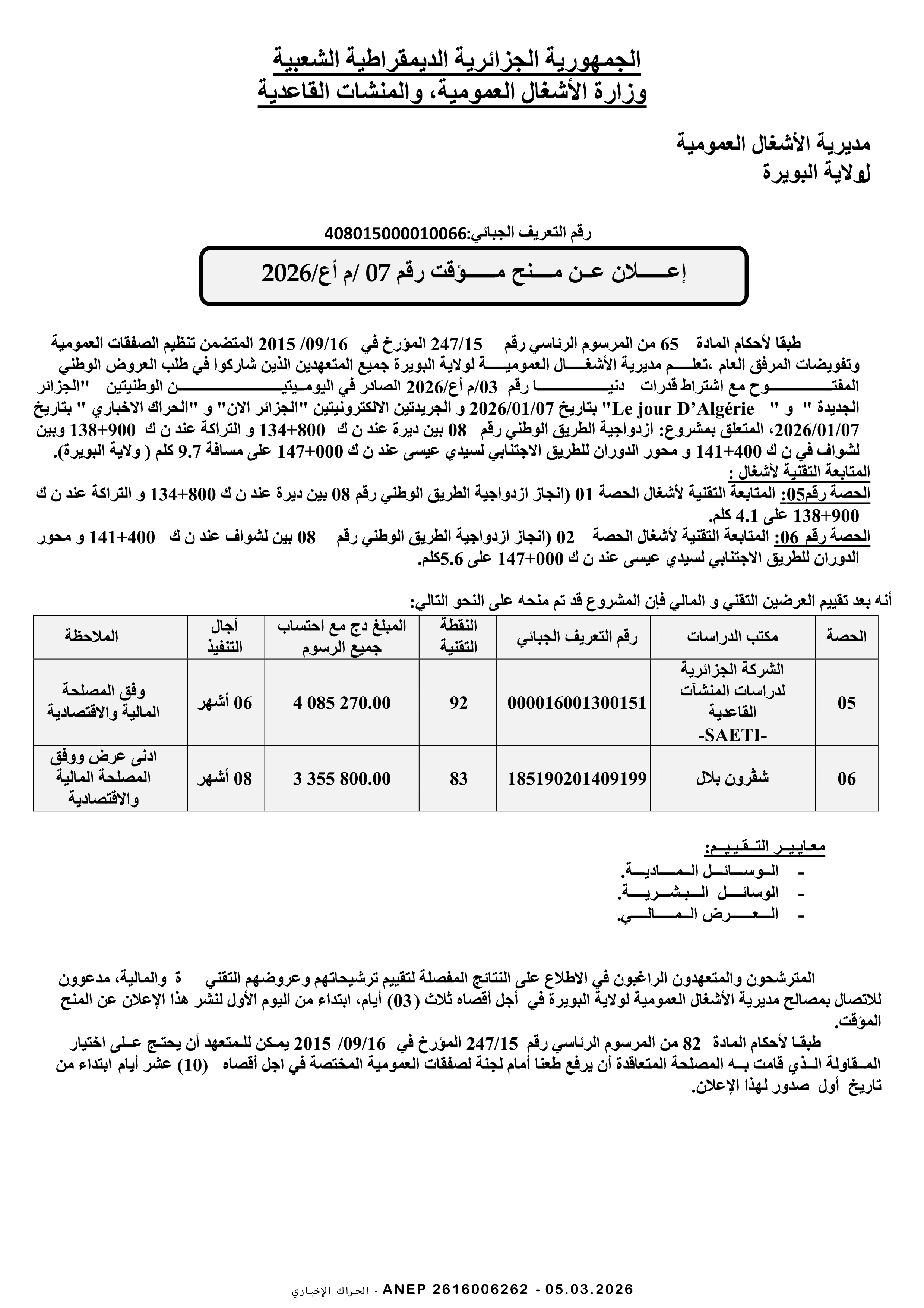مديرية التجهيزات العمومية لولاية برج بوعريريج