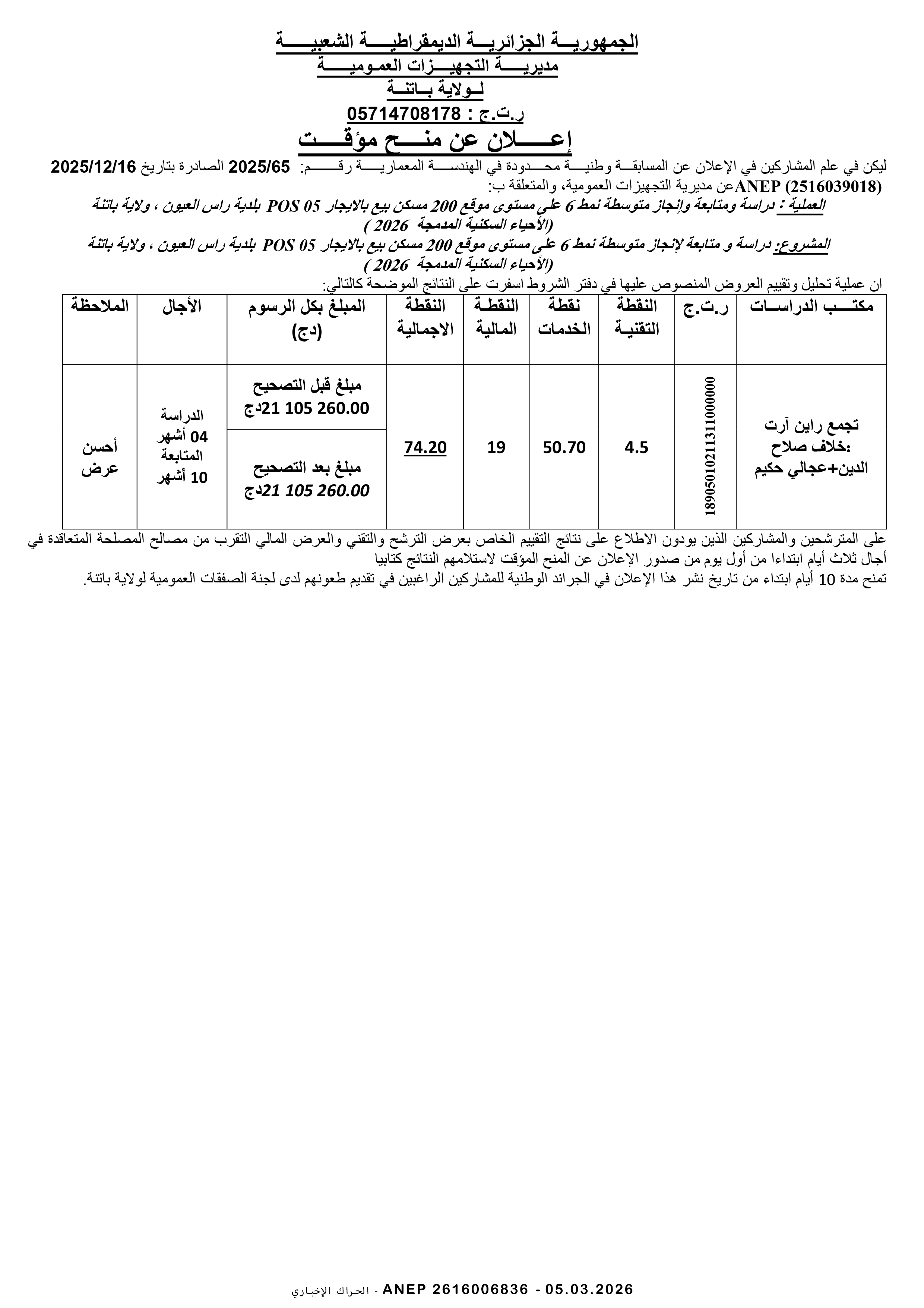 دراسة و متابعة لانجاز 200 مسكن عمومي إيجاري ولاية الطارف
