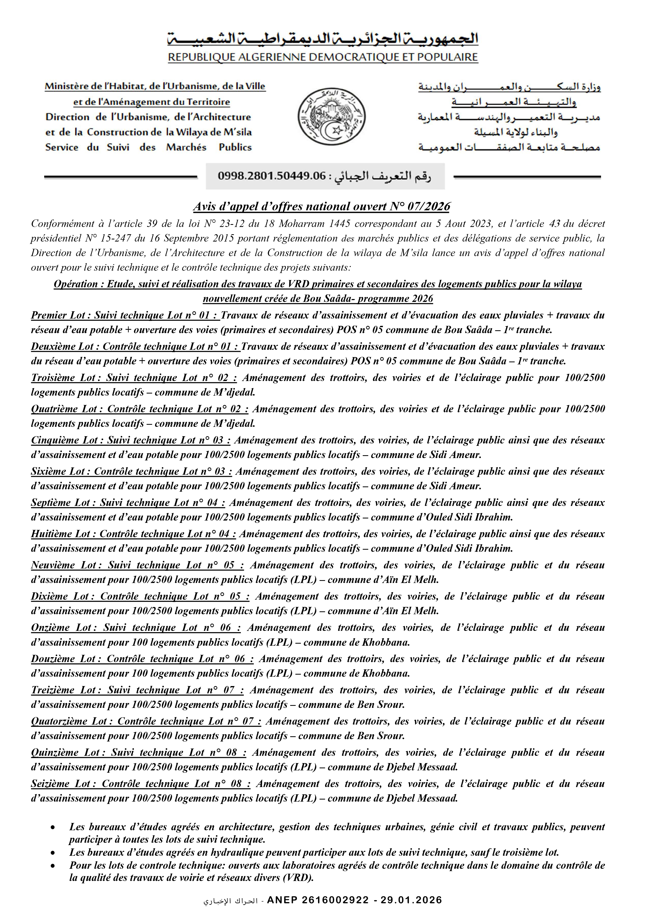 مديرية التعمير و الهندسة المعمارية و البناء لولاية المسيلة