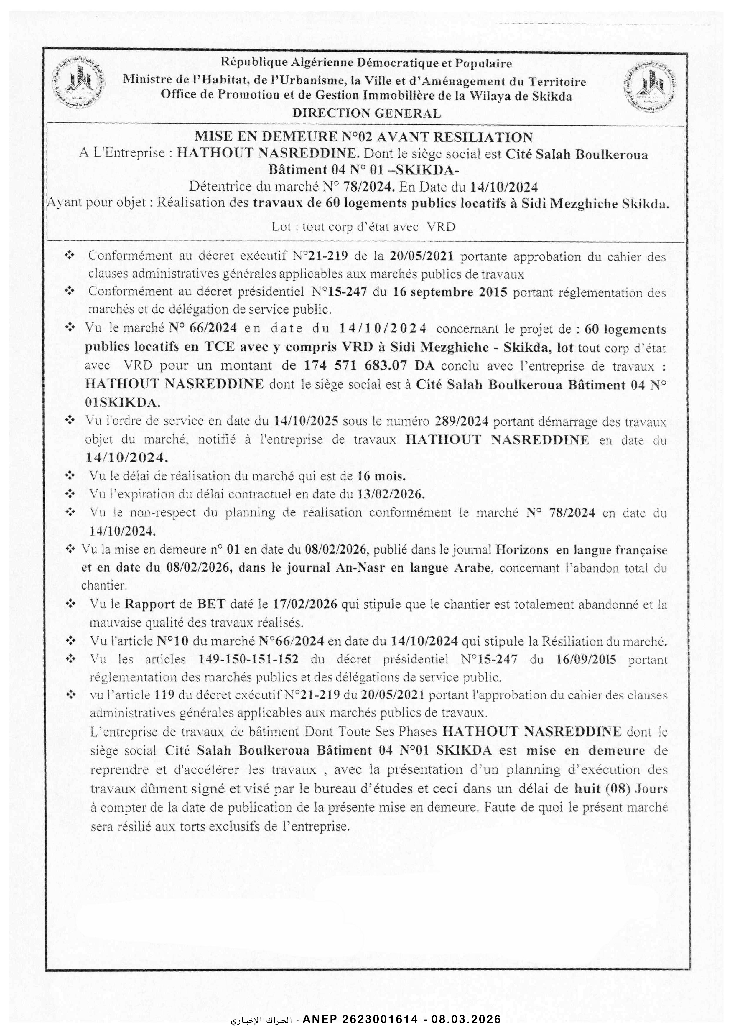 ديوان الترقية و التسيير العقاري لولاية سكيكدة