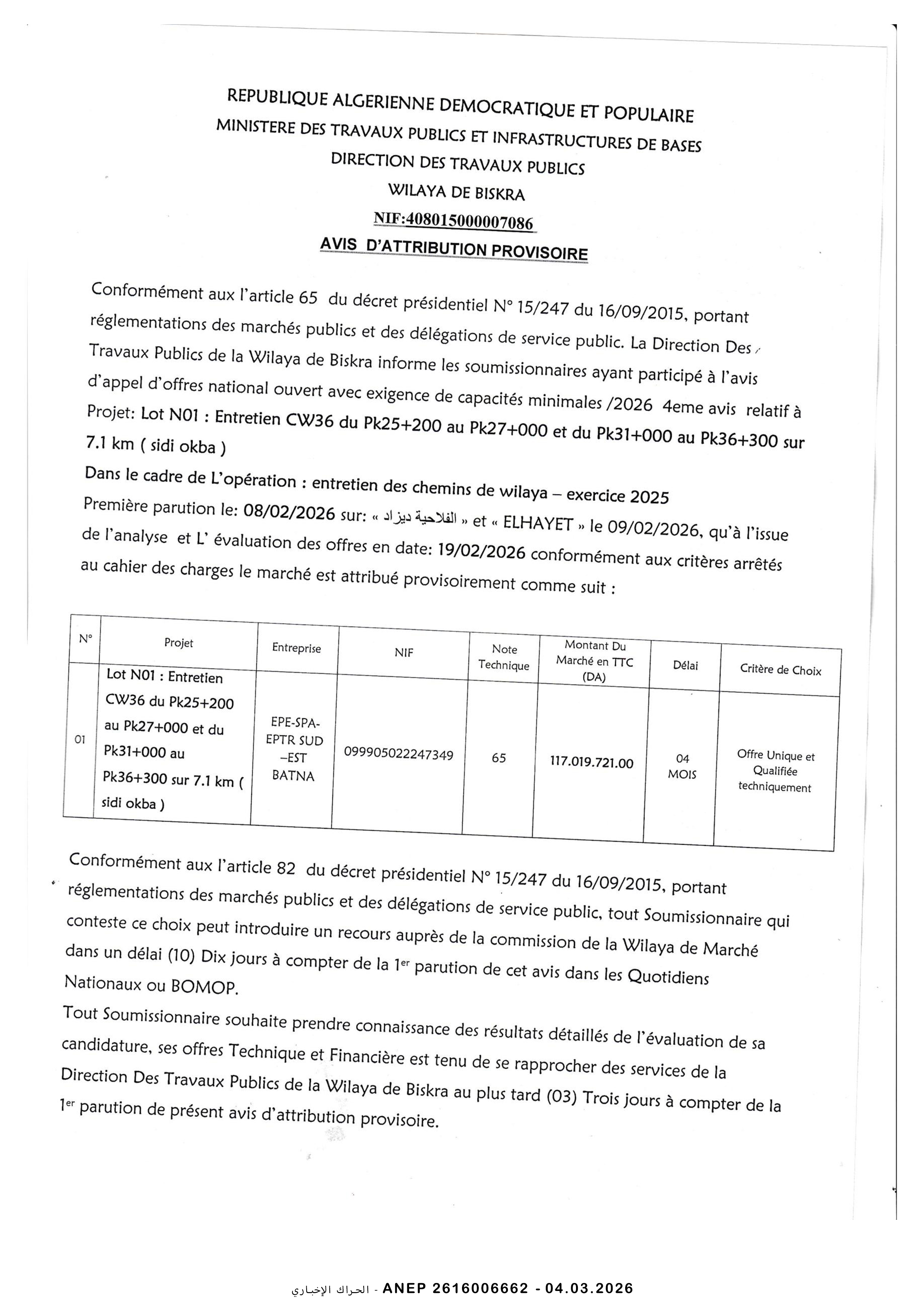مديرية الاشغال العمومية لولاية بسكرة