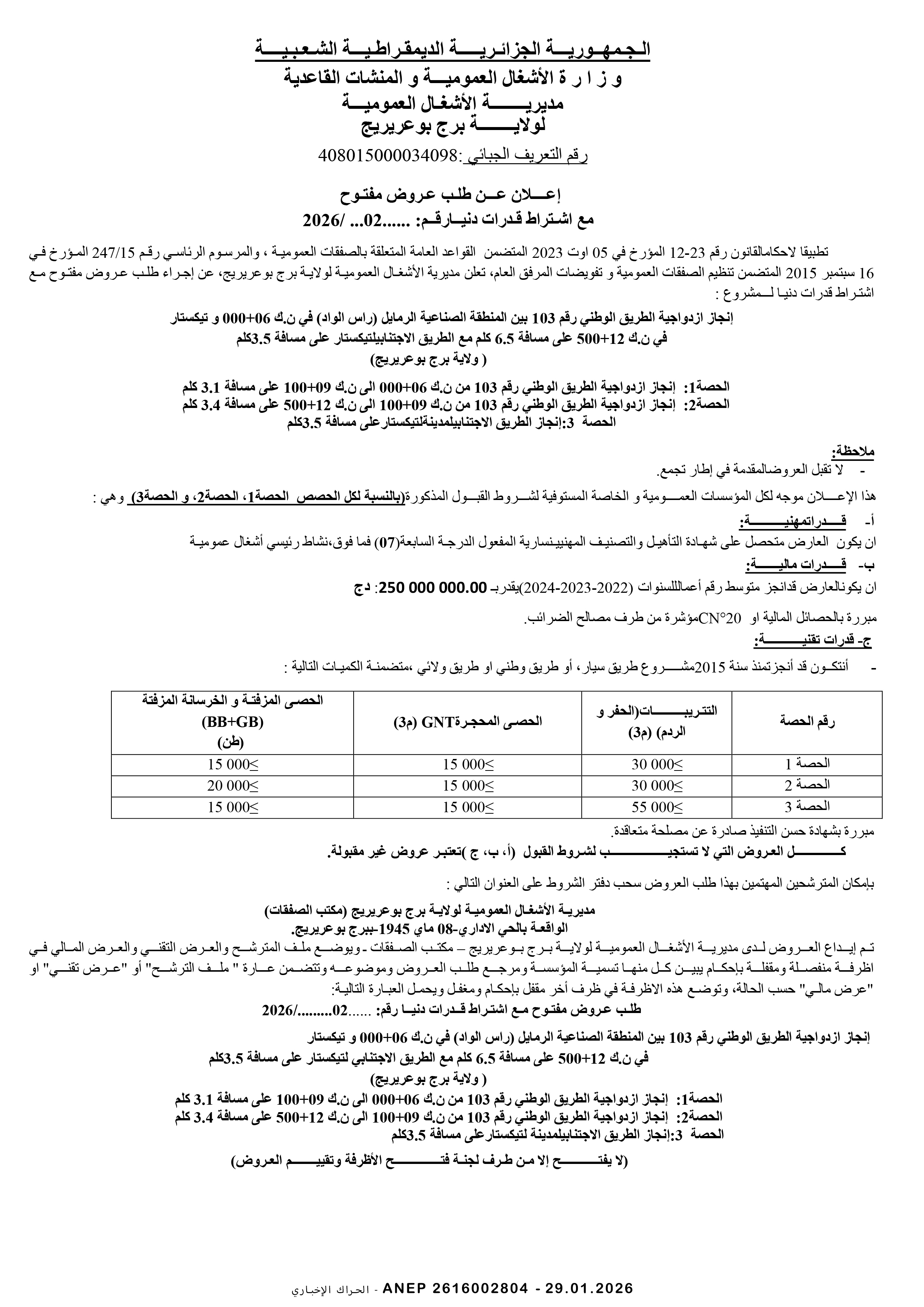 مديرية الأشغال العمومية لولاية برج بوعريريج