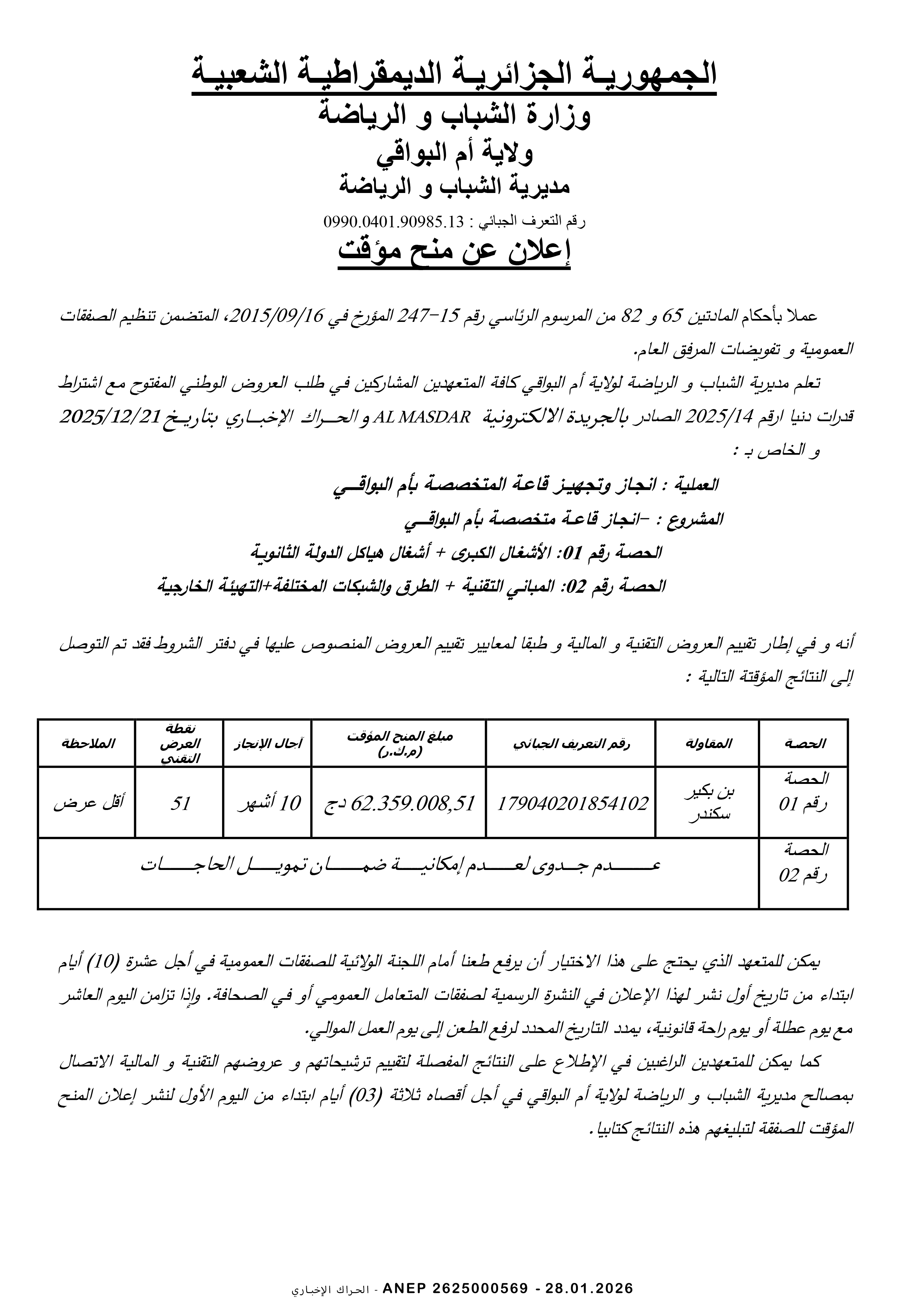 مديرية التجهيزات العمومية ولاية أم البواقي
