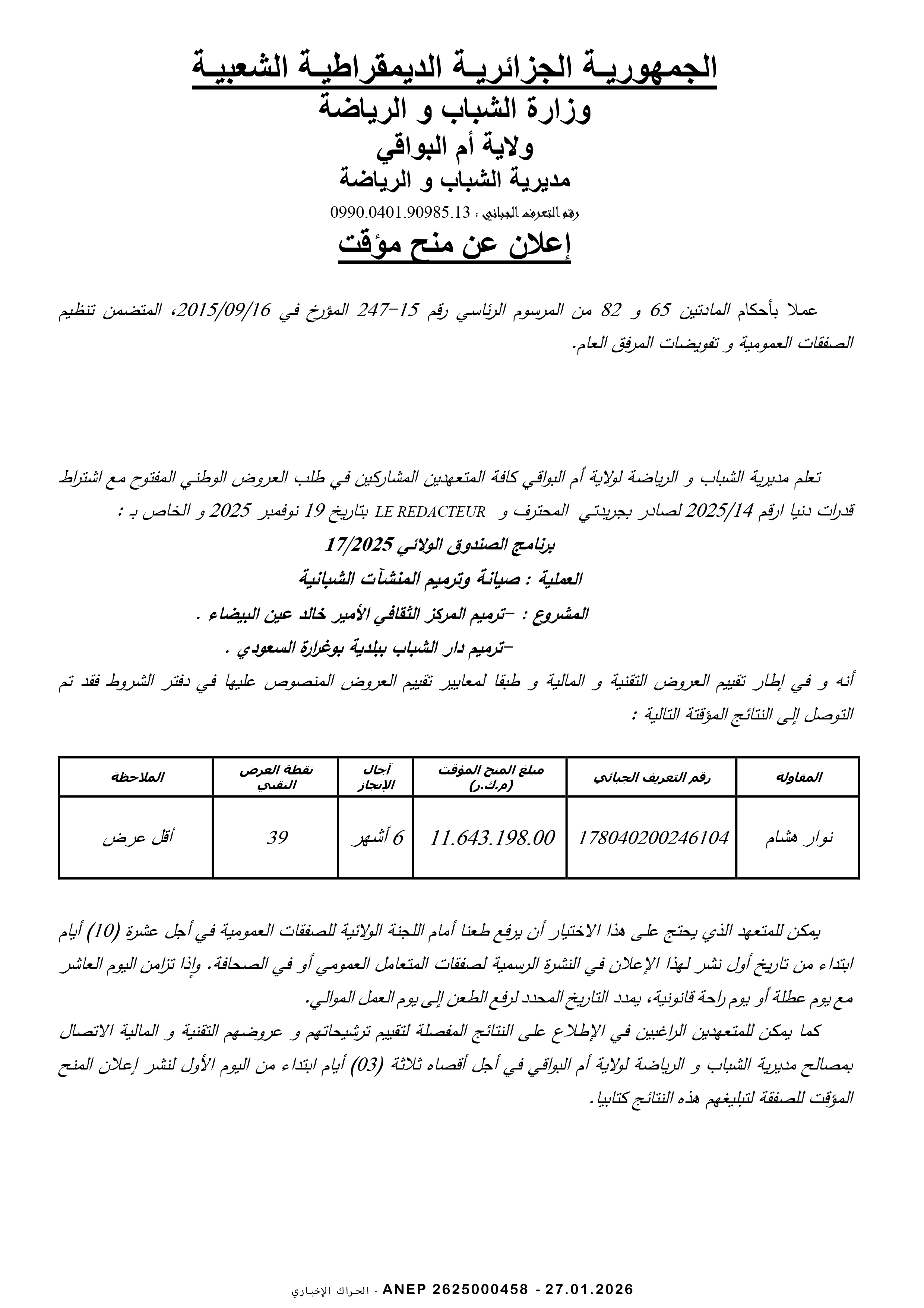 مديرية الشباب و الرياضة ولاية أم البواقي