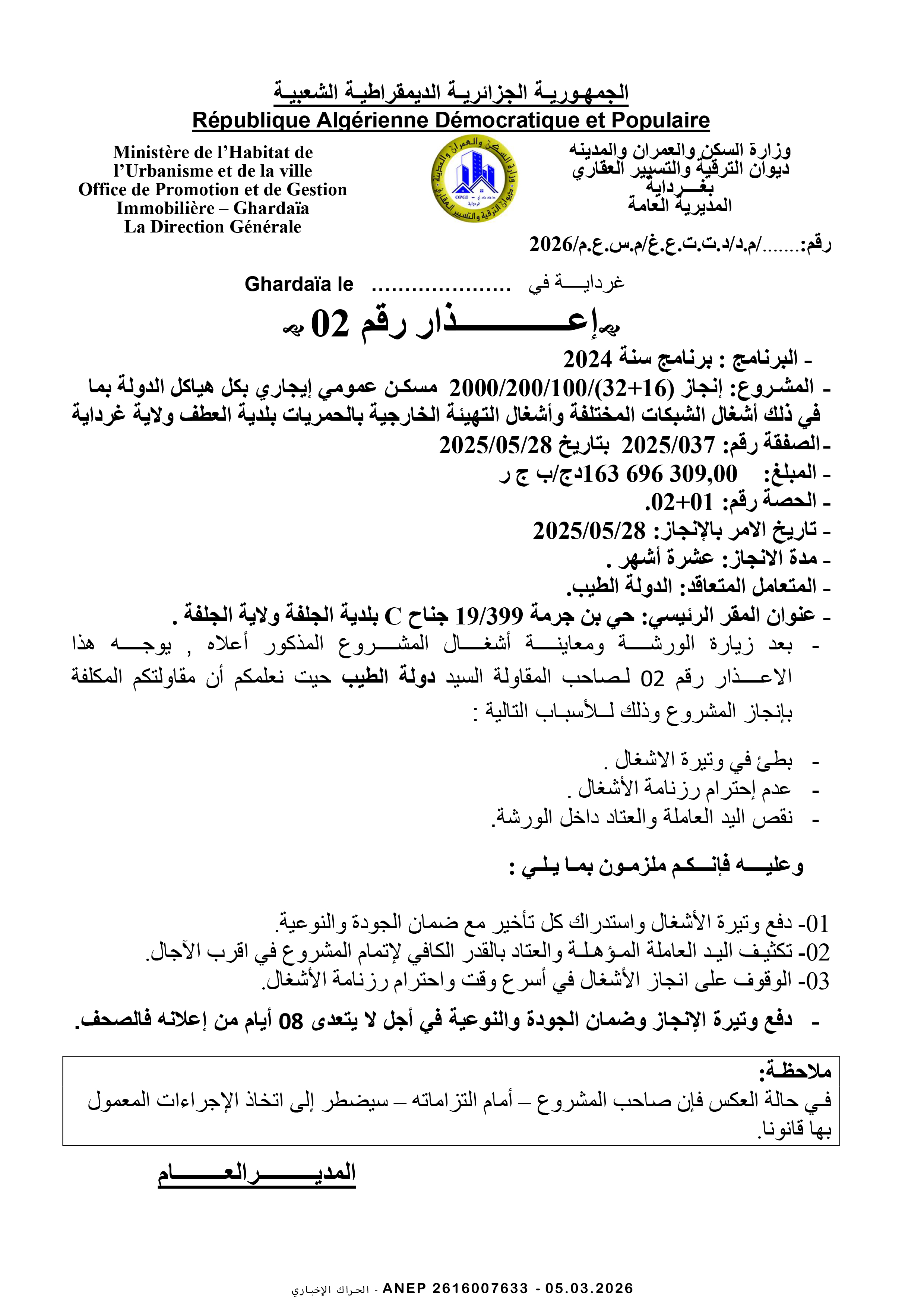 مديرية السكن ولاية المنيعة